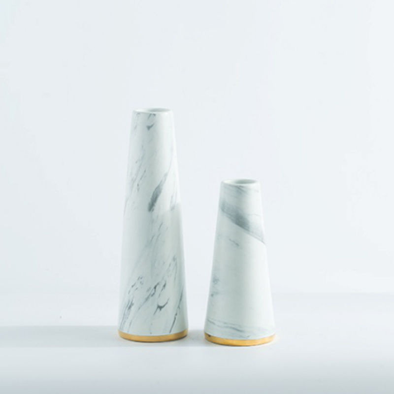 2019新品白金石紋陶瓷花瓶 現代樣板房軟裝飾品 細口干花器擺件1入