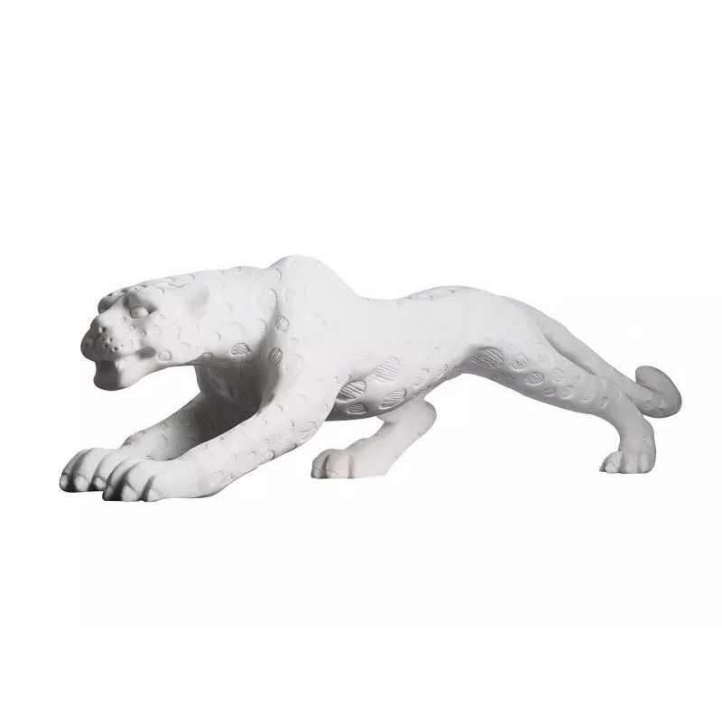 簡約現代樣板房售樓處酒店家居桌面擺件漢白玉雕刻豹子動物裝飾品1入