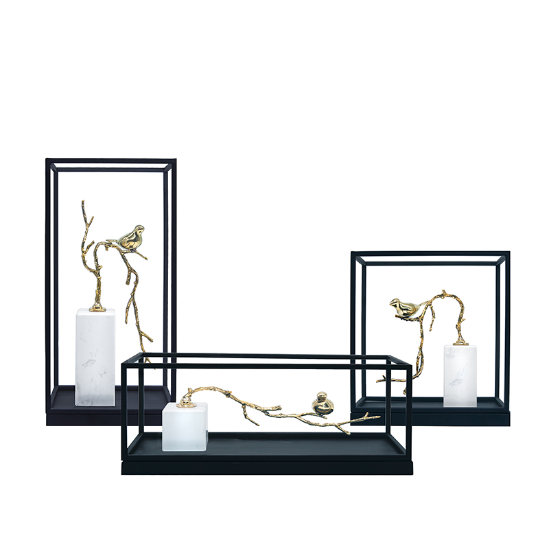 新中式樣板房金屬禪意銅樹枝小鳥擺件酒店大廳會所客廳擺設裝飾品1入