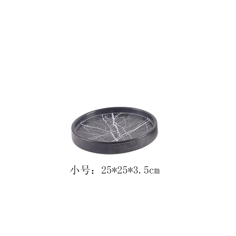 簡約樣板房間陶瓷圓形托盤擺件家居茶幾大理石紋黑白水果盤裝飾品1入