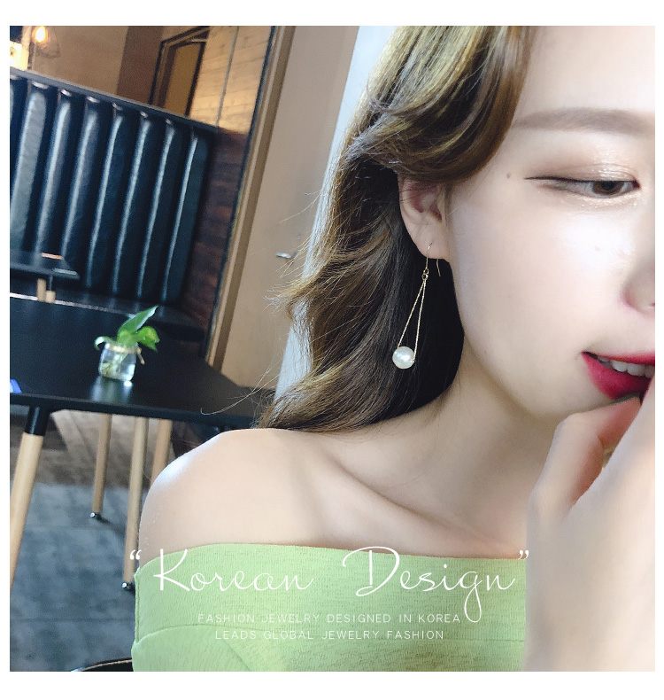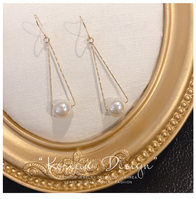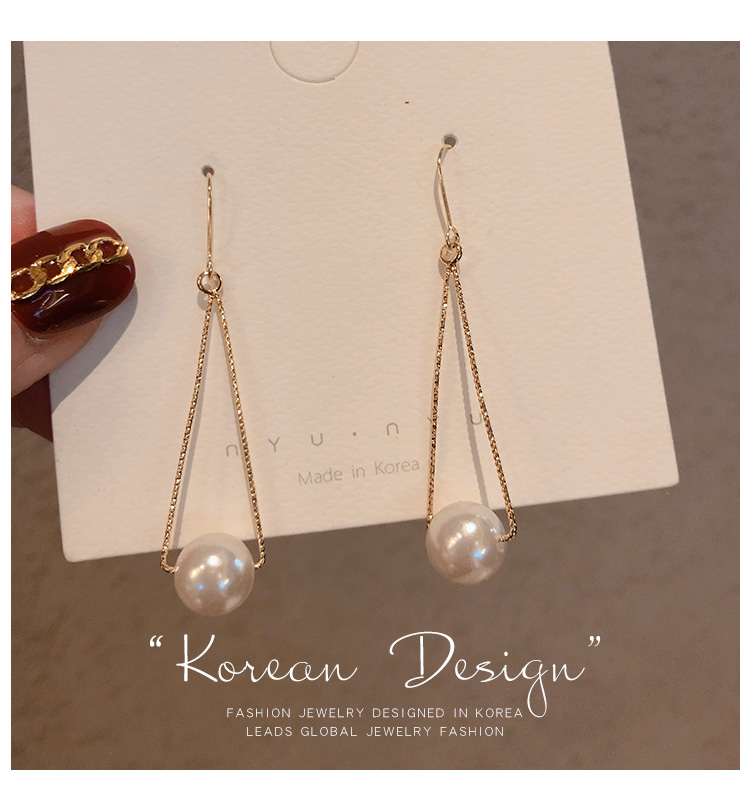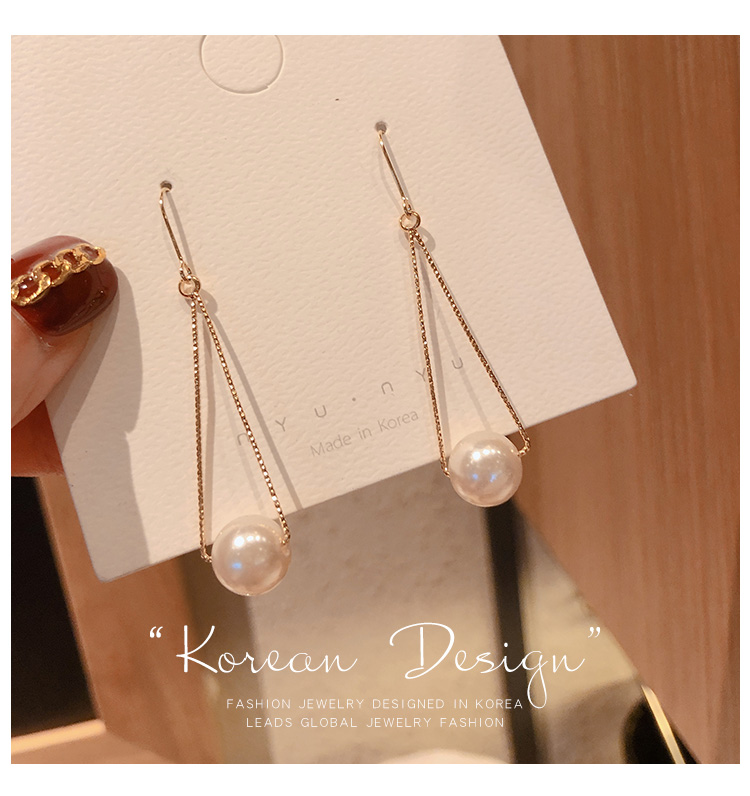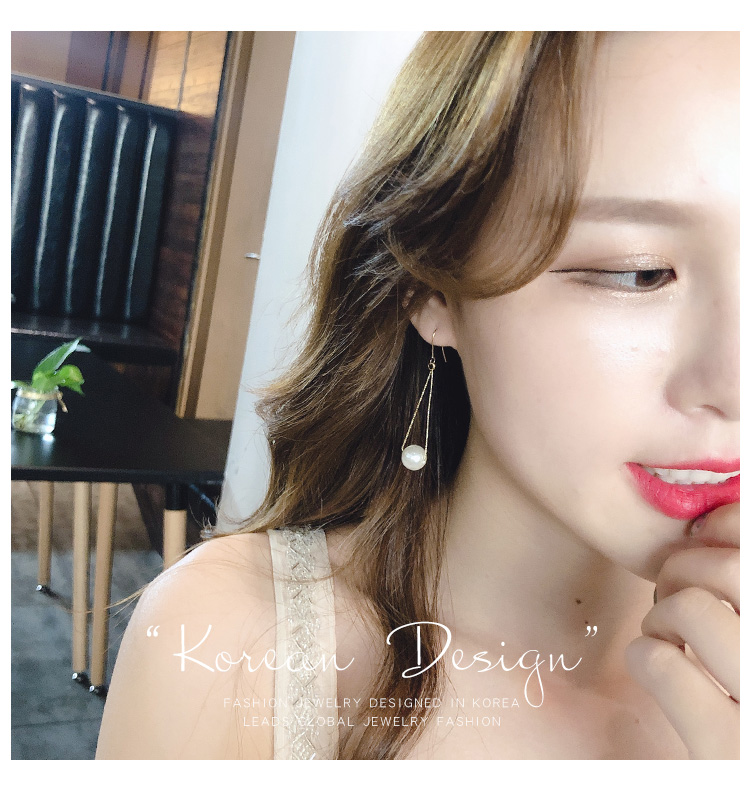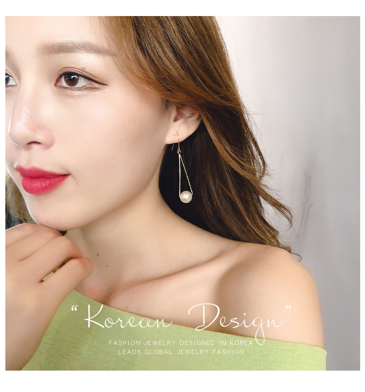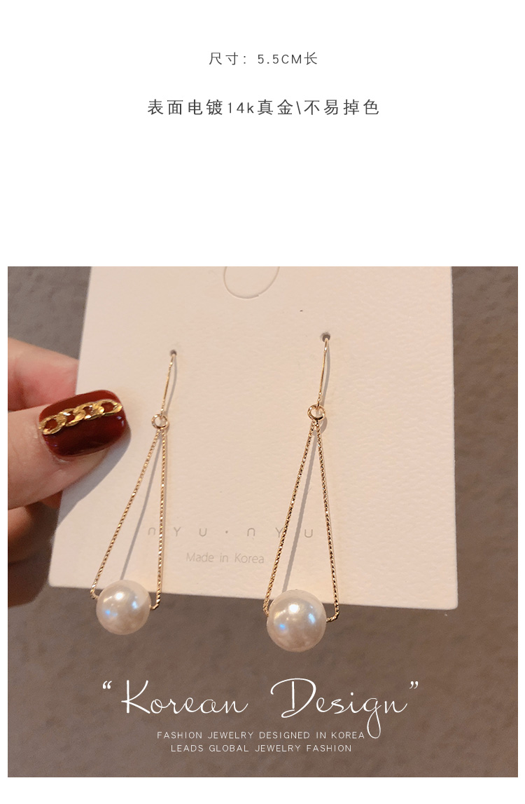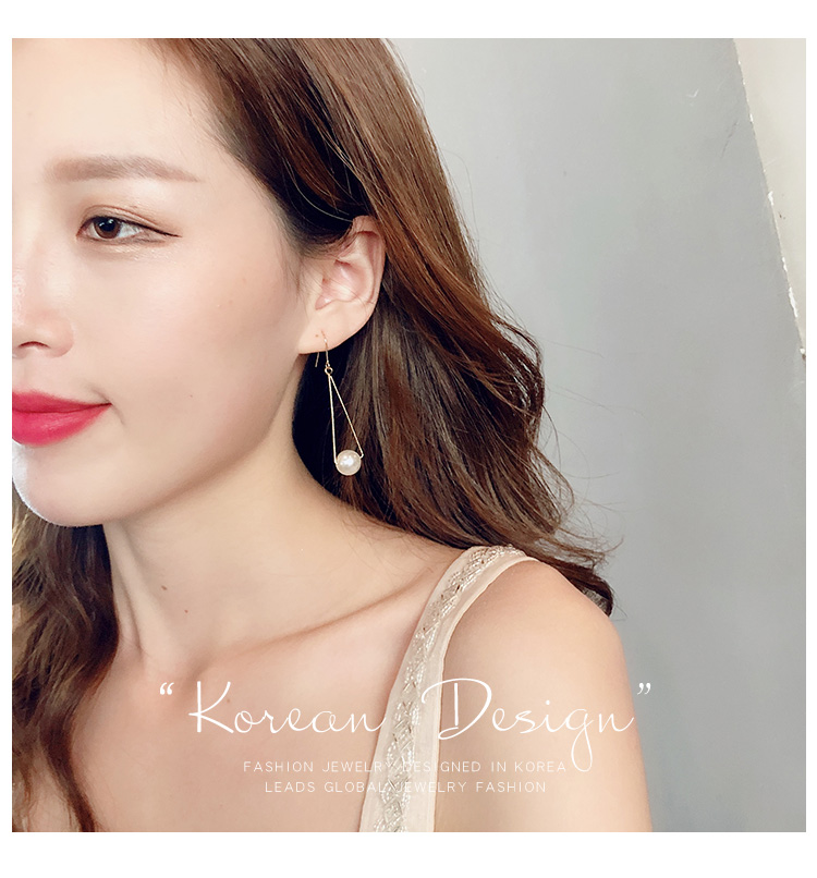 設計感耳釘小眾網紅洋氣2019新款潮個性簡約耳墜長款三角珍珠耳環1入
