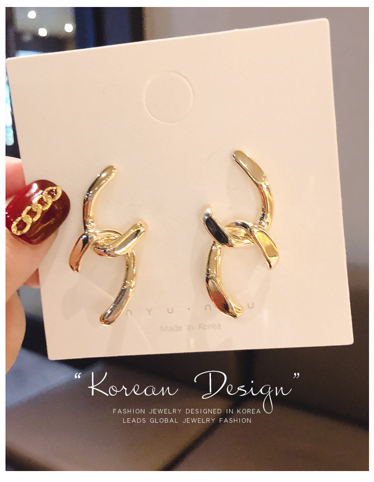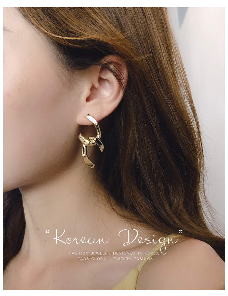 設計感耳環韓國法式小眾氣質耳飾女簡約手拉手不規則金屬網紅耳墜1入