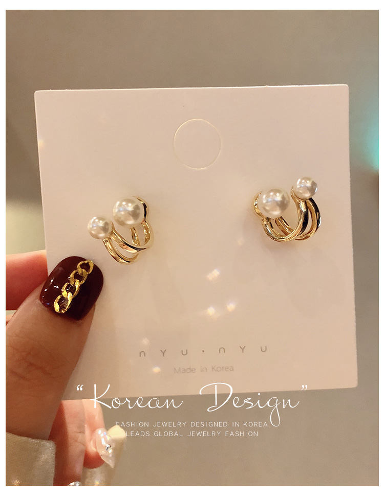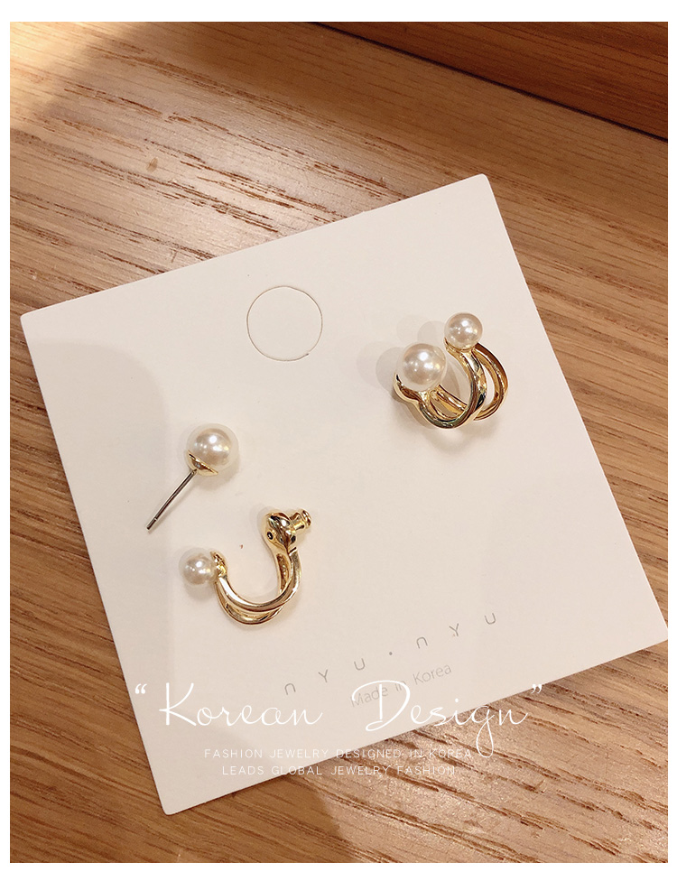 設計感耳環韓國氣質法式網紅耳墜2019新款潮小眾一款兩戴珍珠耳釘1入