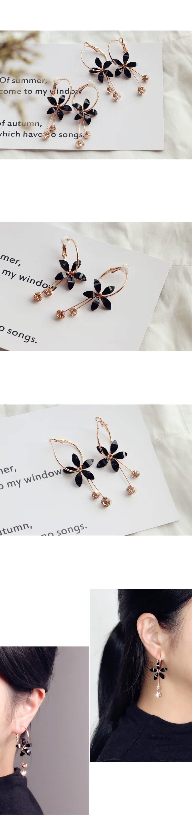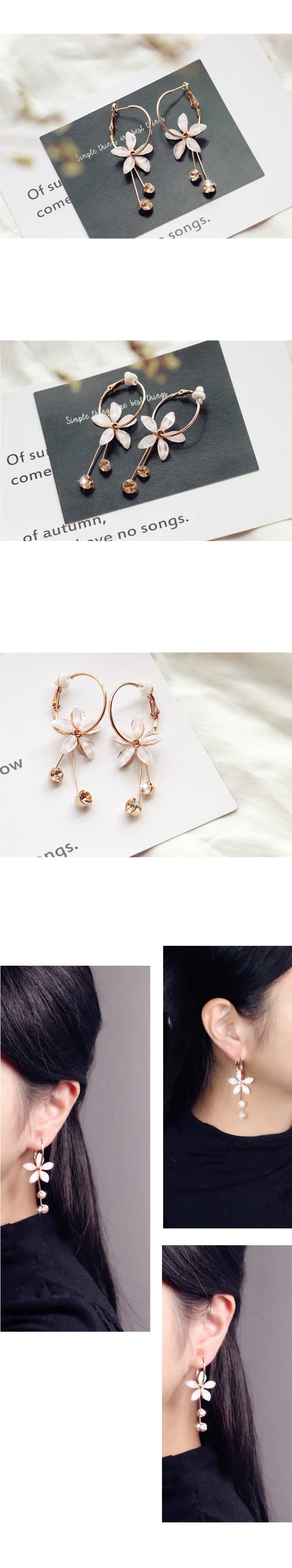 韓國飾品無耳洞隱形耳夾鑲鉆大圈流蘇水晶花耳環耳圈耳飾1入