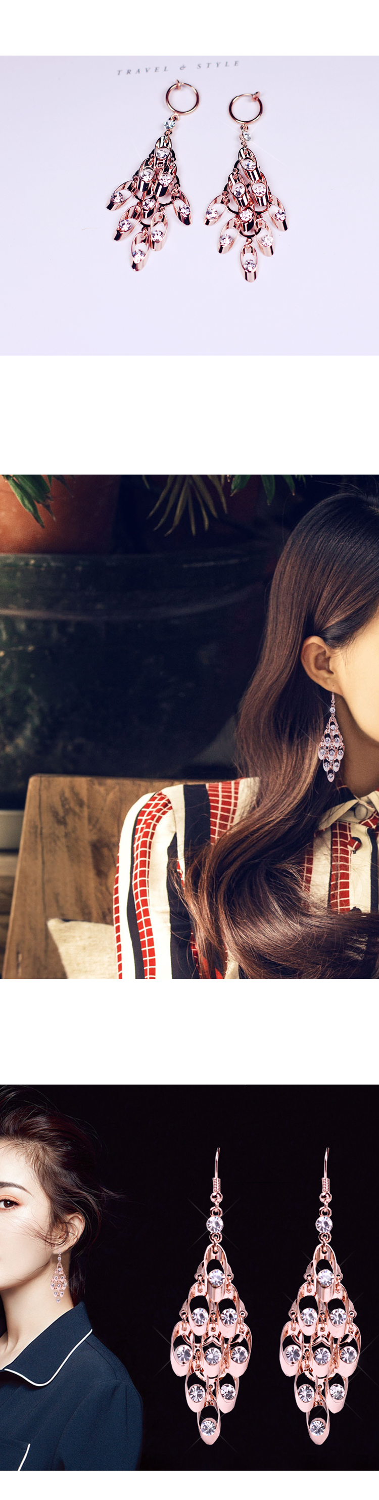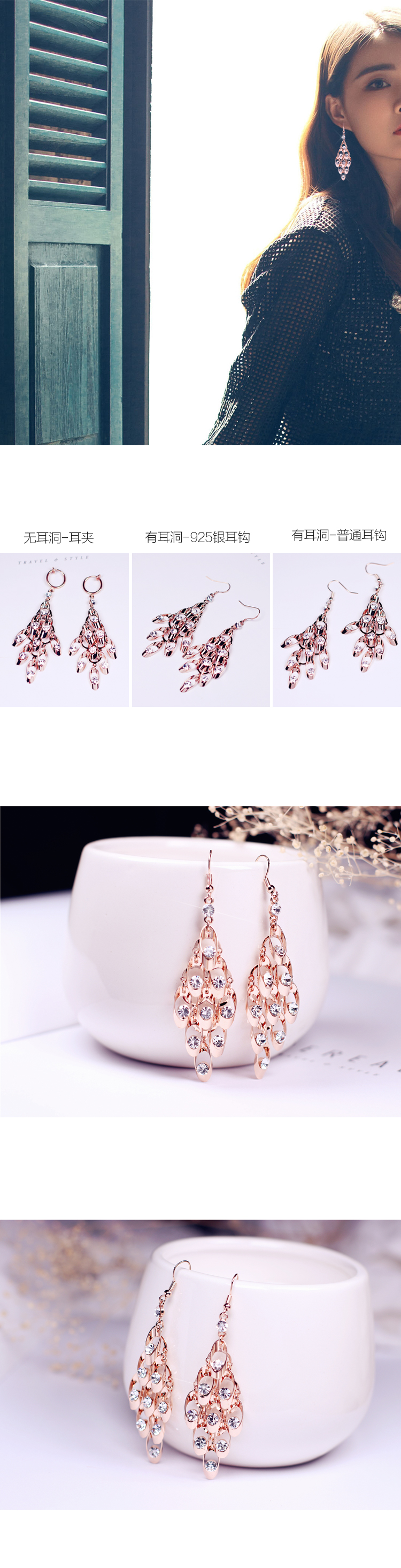 長款水鉆流蘇耳環耳墜無耳洞耳夾925銀耳鉤歐美復古夸張耳飾1入