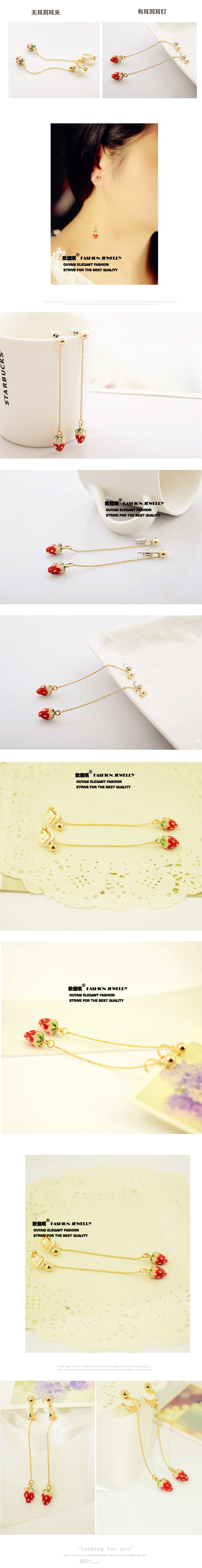 韓版可愛草莓耳釘無耳洞軟墊耳夾甜美耳環女生禮物時尚耳飾品1入