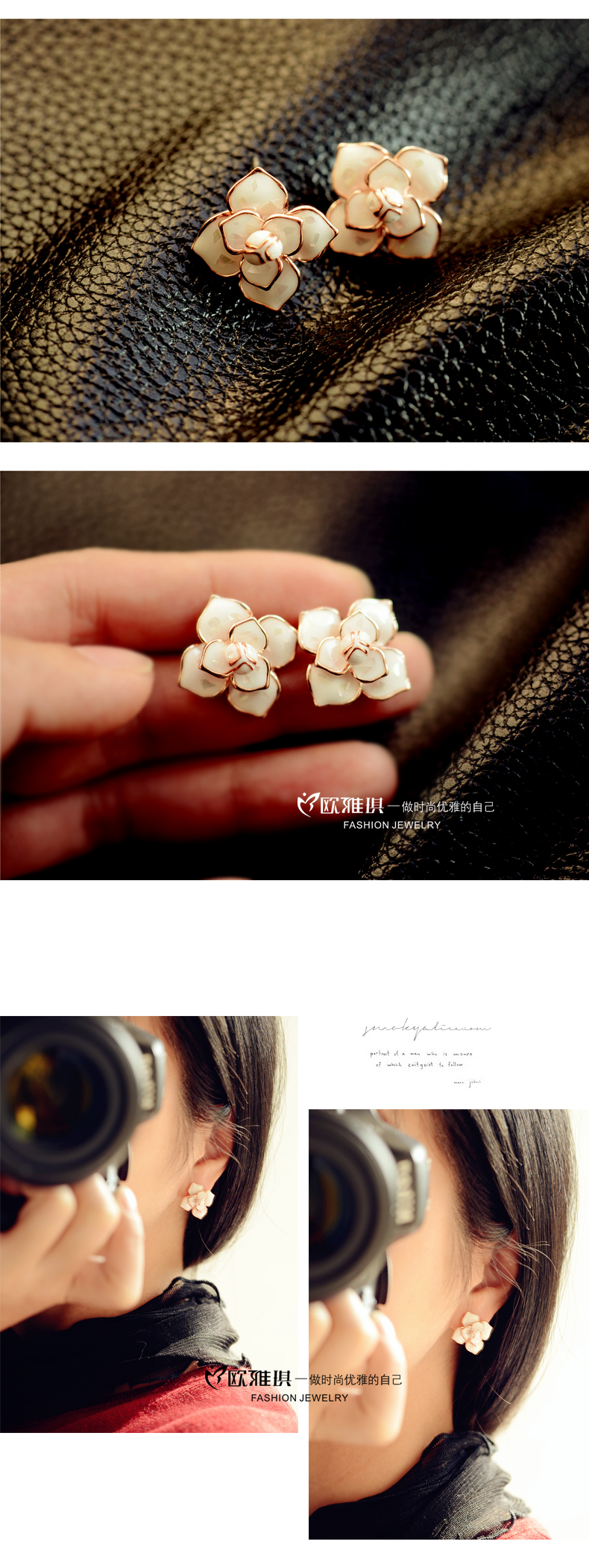 韓國飾品時尚山茶花925銀針無耳洞耳夾韓版耳釘耳飾耳環女禮物1入
