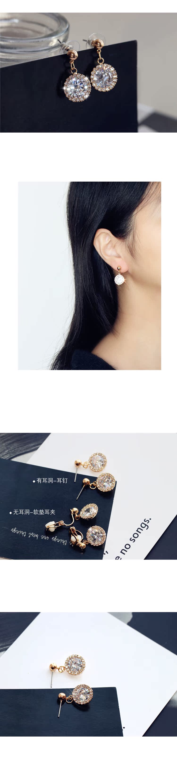 韓國飾品精致大閃鉆無耳洞耳夾耳釘假耳環女時尚耳飾氣質女人飾品1入