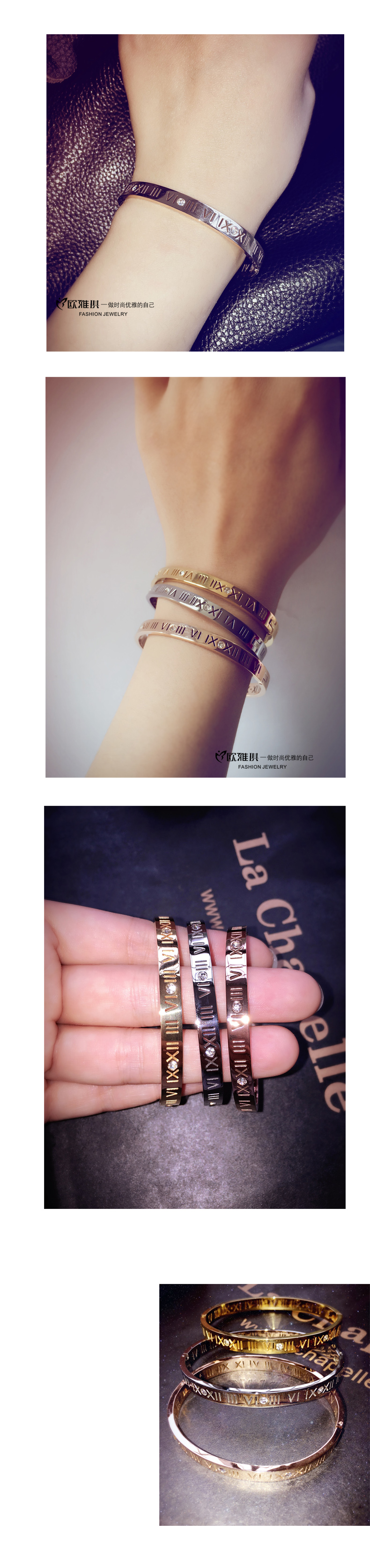 韓國配飾鈦鋼玫瑰金彩金羅馬數字手鐲女歐美時尚日韓飾品潮品簡約1入