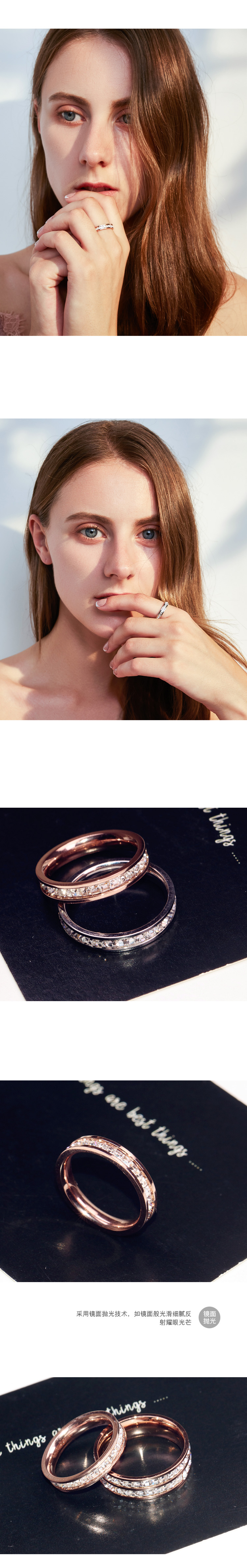 韓國時尚單排雙排方鉆鈦鋼戒指白金玫瑰金指環戒子食指戒女飾品1入