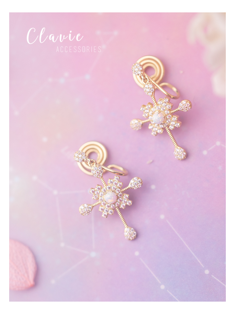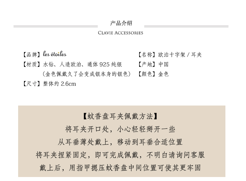 輕珠寶復古vintage十字架歐珀歐泊opal純銀耳釘蚊香盤耳夾無耳洞1入