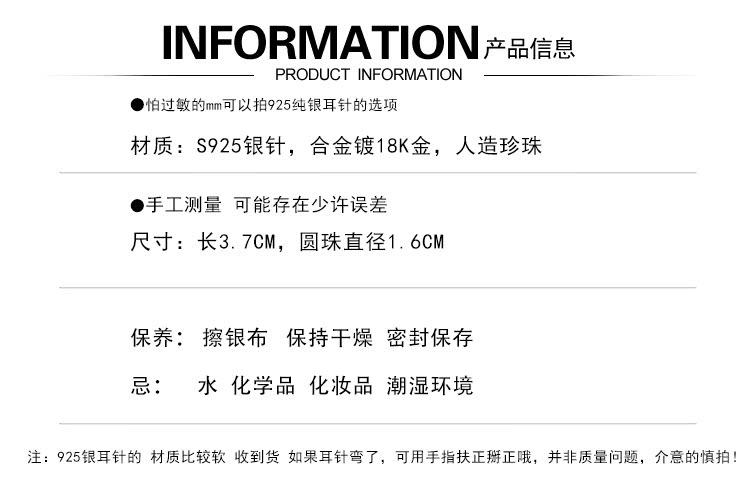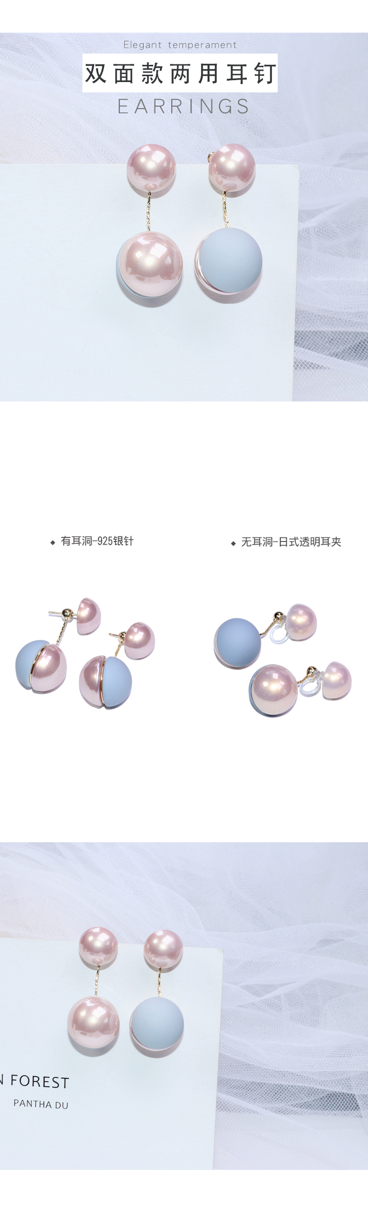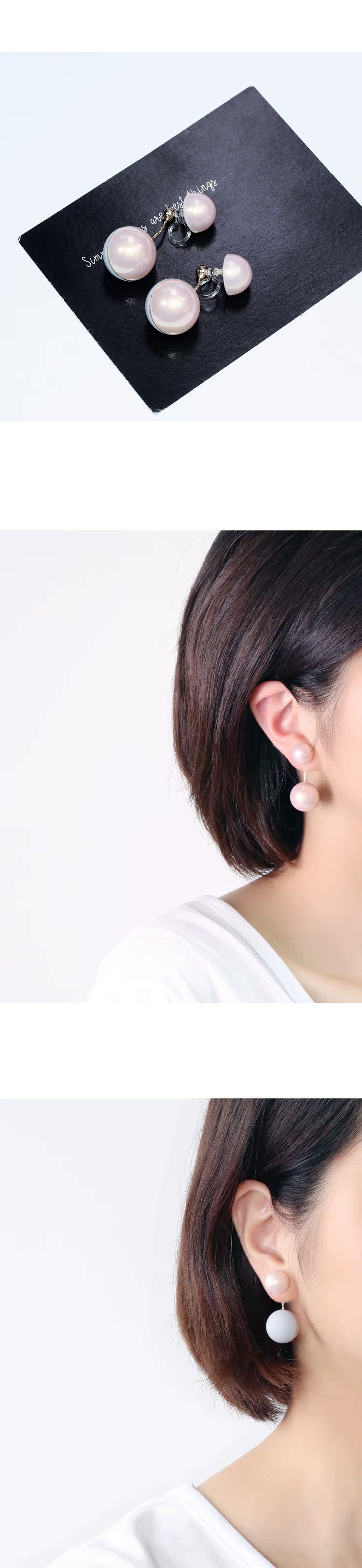雙面可戴時尚S925銀針粉灰圓珠耳釘兩用無耳洞耳夾無洞耳環飾品女1入