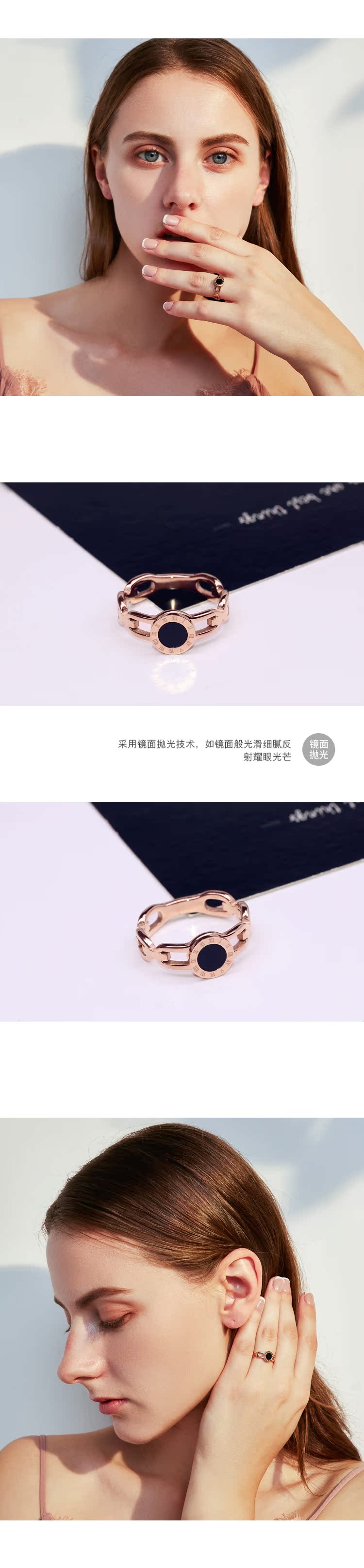 鈦鋼鍍18K玫瑰金黑色圓羅馬數字表帶款戒指指環女保色戒子食指戒1入