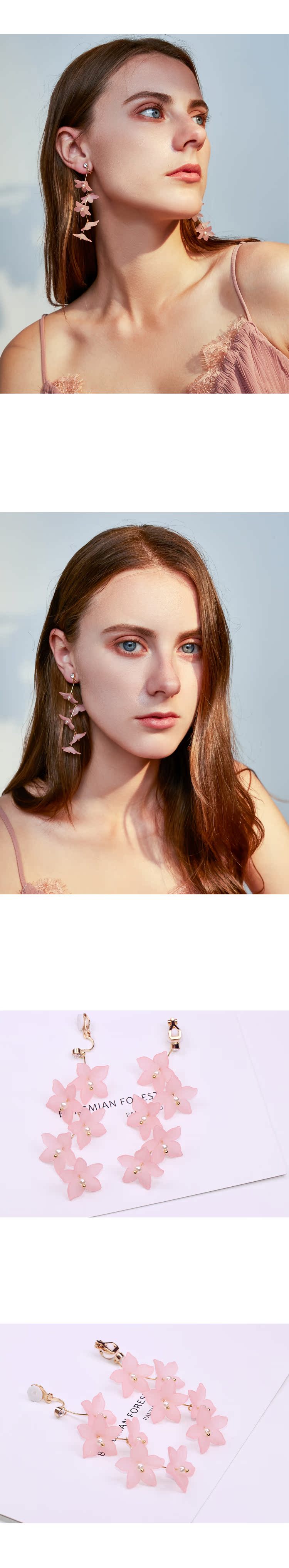 韓版925銀針森系長款花簇耳環無耳洞軟墊耳夾甜美少女個性假耳釘1入