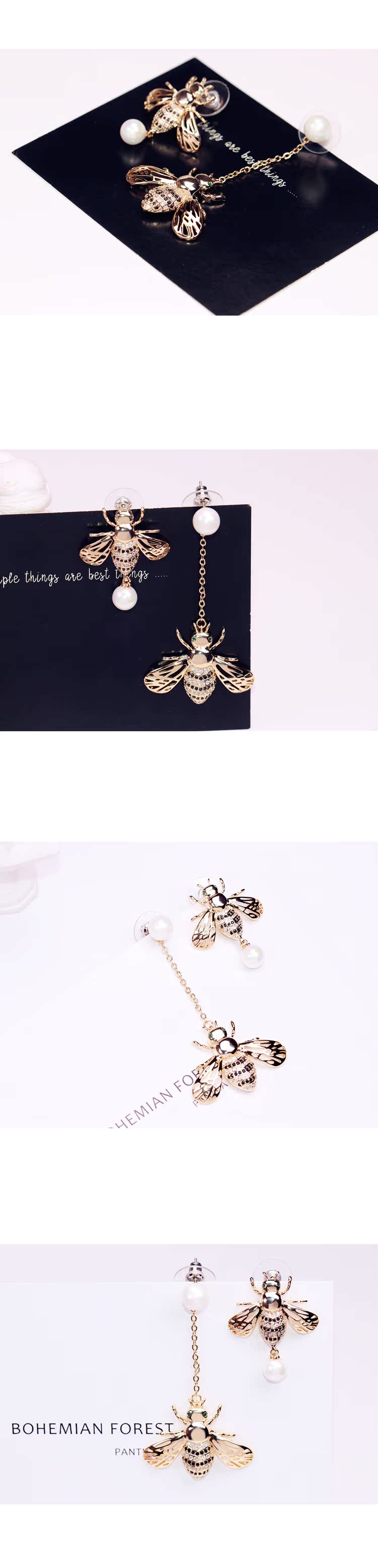 韓版925銀針不對稱小蜜蜂耳釘歐美風格個性夸張耳環耳飾品女禮物1入