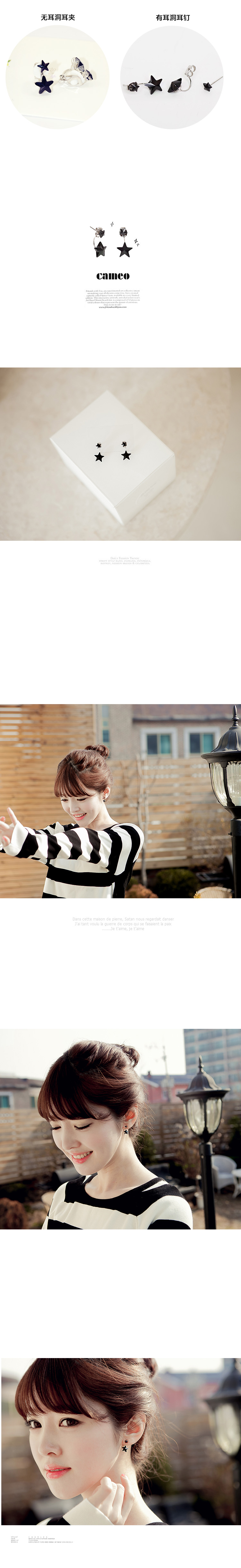 黑色前后兩用五角星星耳釘無耳洞耳夾韓國飾品時尚耳墜女禮物1入