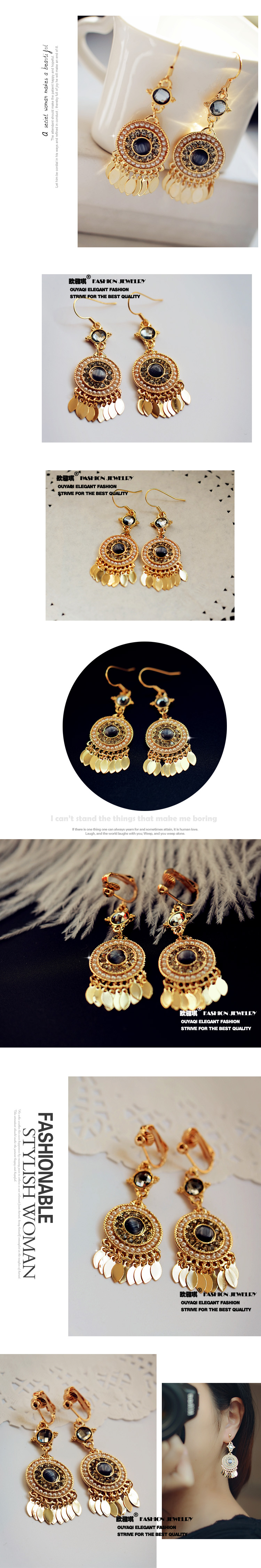韓國飾品潮時尚耳飾耳環波西米亞貓眼石耳墜無耳洞耳夾禮物1入
