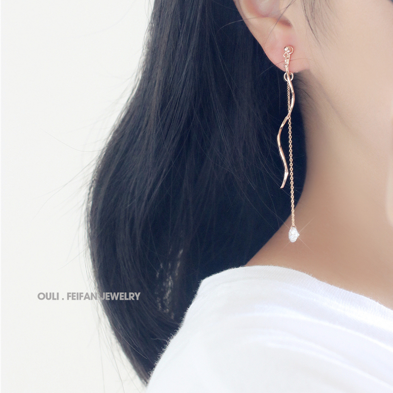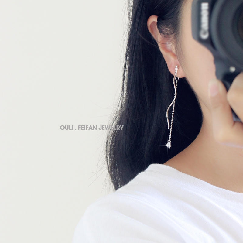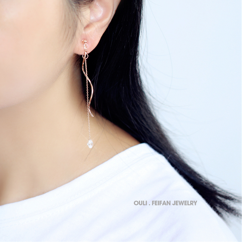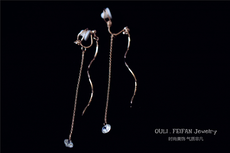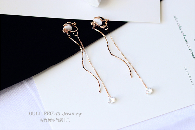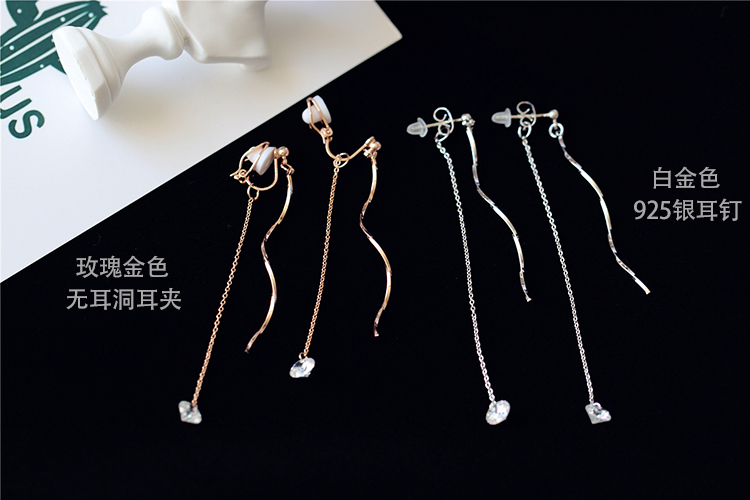 韓版925銀針耳釘簡約螺旋流蘇氣質無耳洞耳夾女無洞耳飾假耳環1入