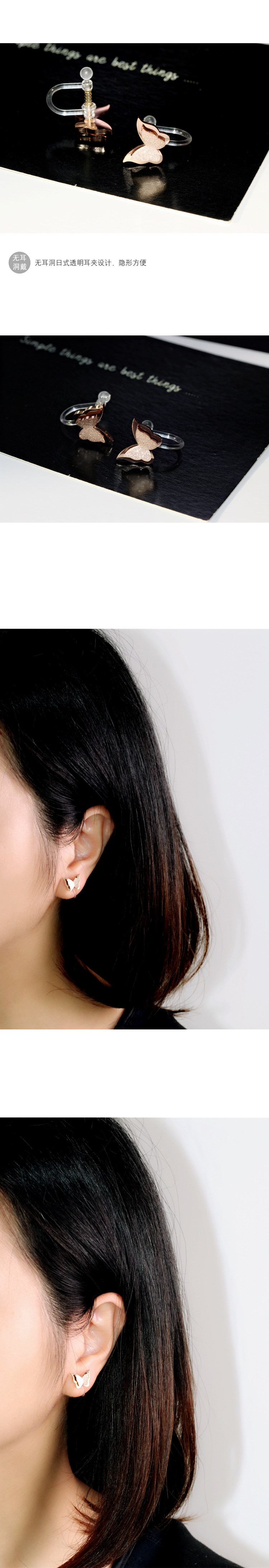 韓版鈦鋼玫瑰金氣質磨砂蝴蝶耳釘免打耳洞透明彈簧耳夾女學生飾品1入