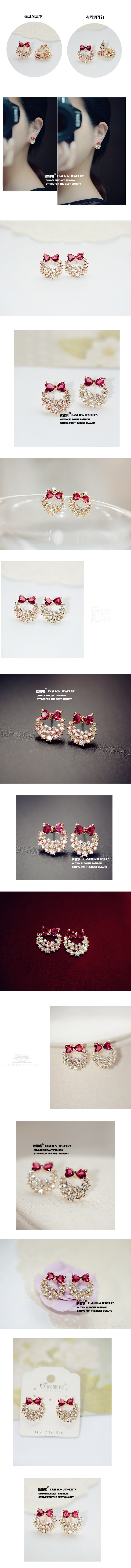 蝴蝶結水鉆OL耳釘無耳洞耳夾925銀針耳飾女韓國飾品潮時尚1入
