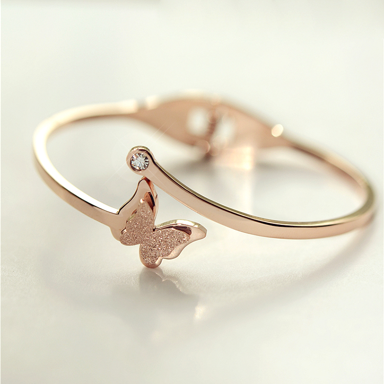 鈦鋼鍍18k玫瑰金韓版磨砂蝴蝶項鏈