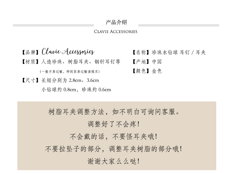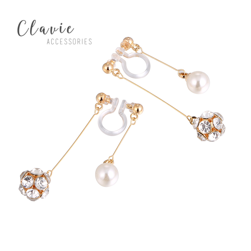 適合圓臉日系可愛少女珍珠鉆會動耳線效果的耳夾u型樹脂無耳洞女1入