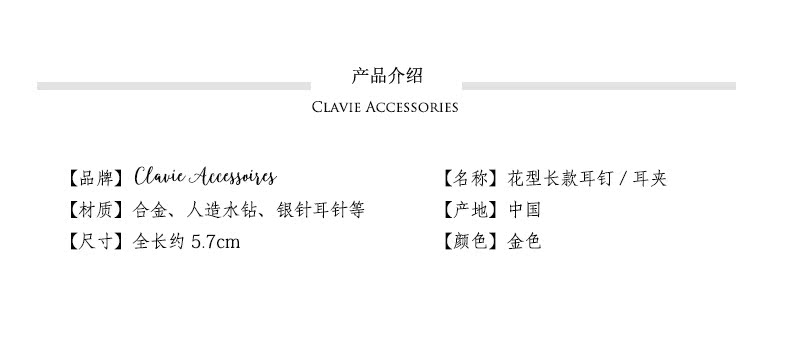 高級感小眾設計復古長款適合圓臉修飾臉型顯瘦都耳釘耳夾無耳洞女1入