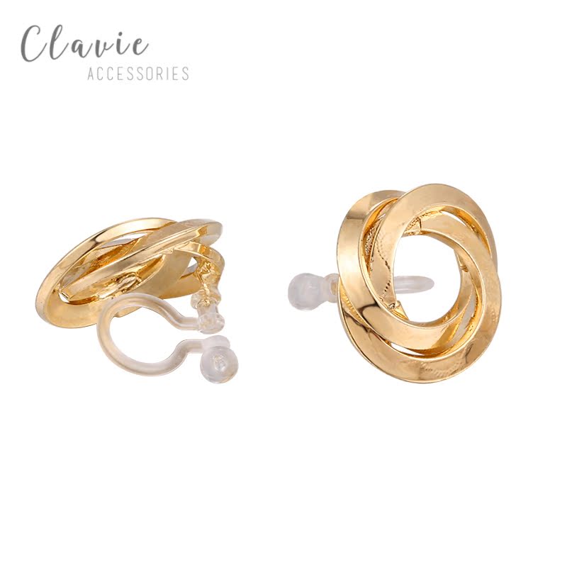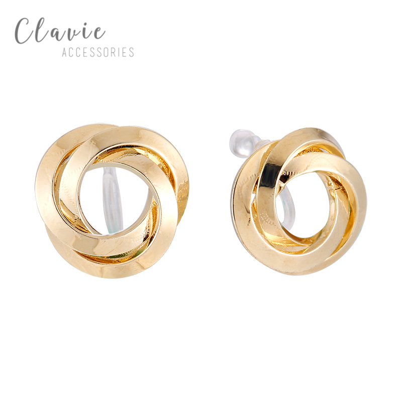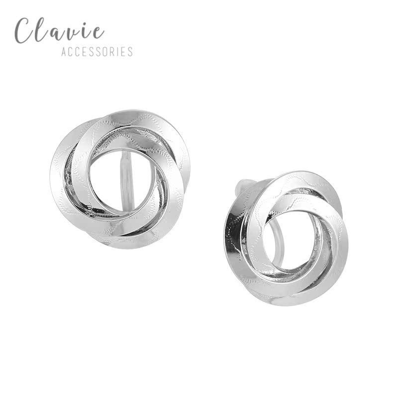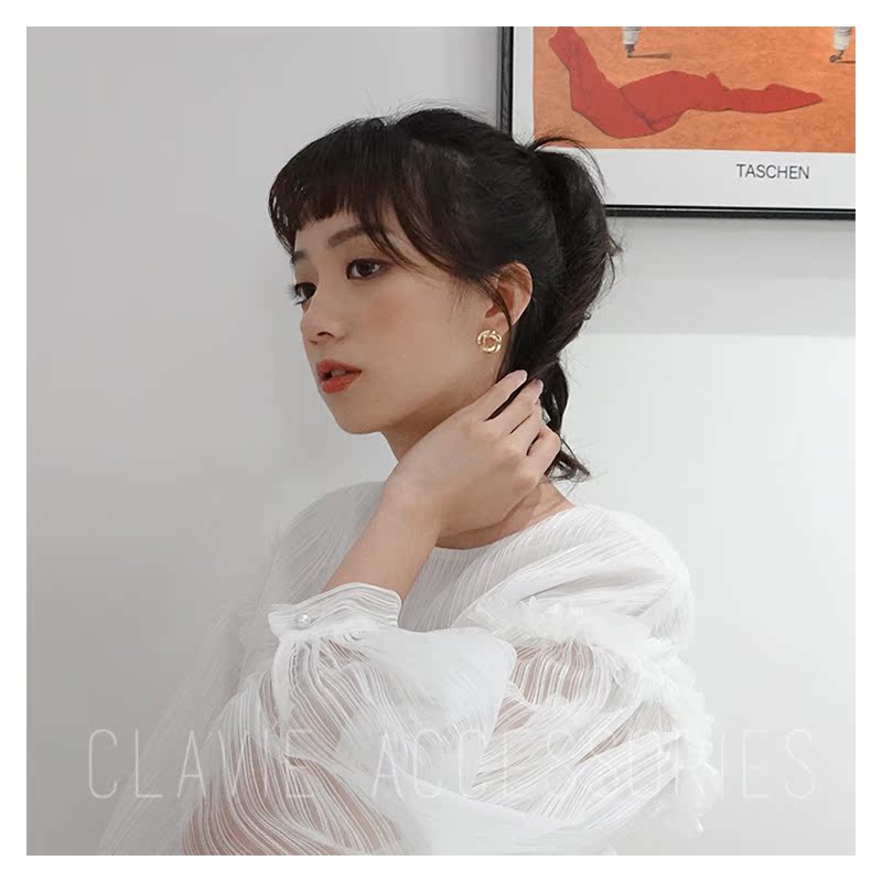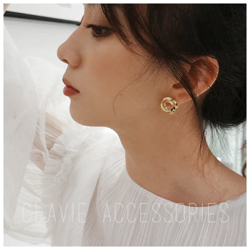 韓國簡約簡單氣質冷淡風ins圓圈圈扭曲925純銀耳針耳釘無耳洞耳夾1入
