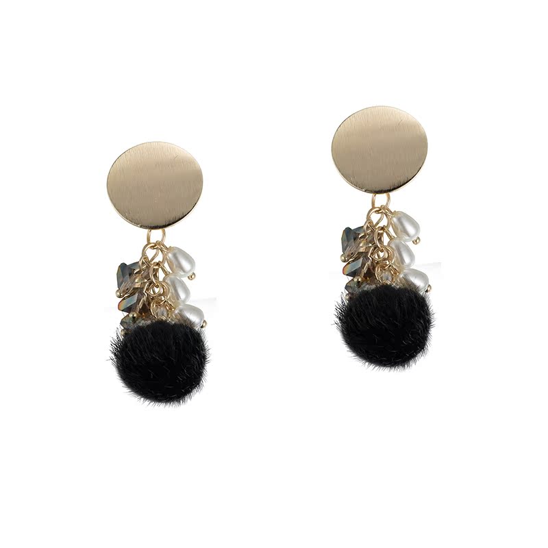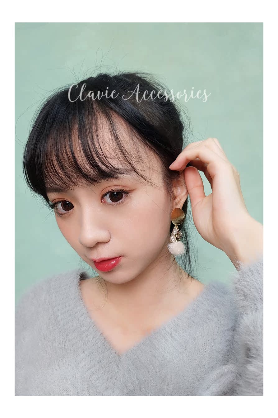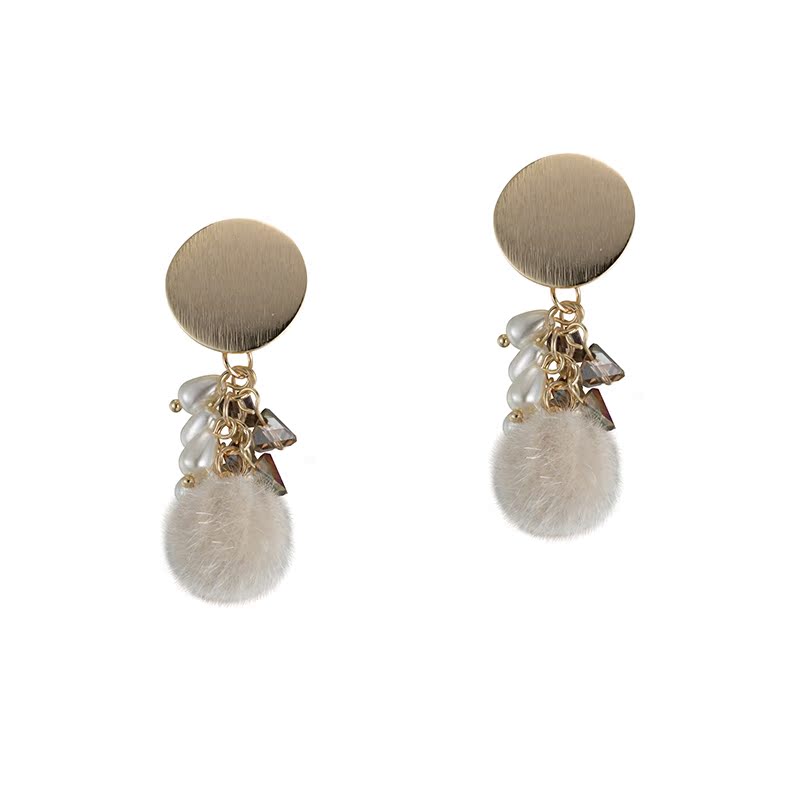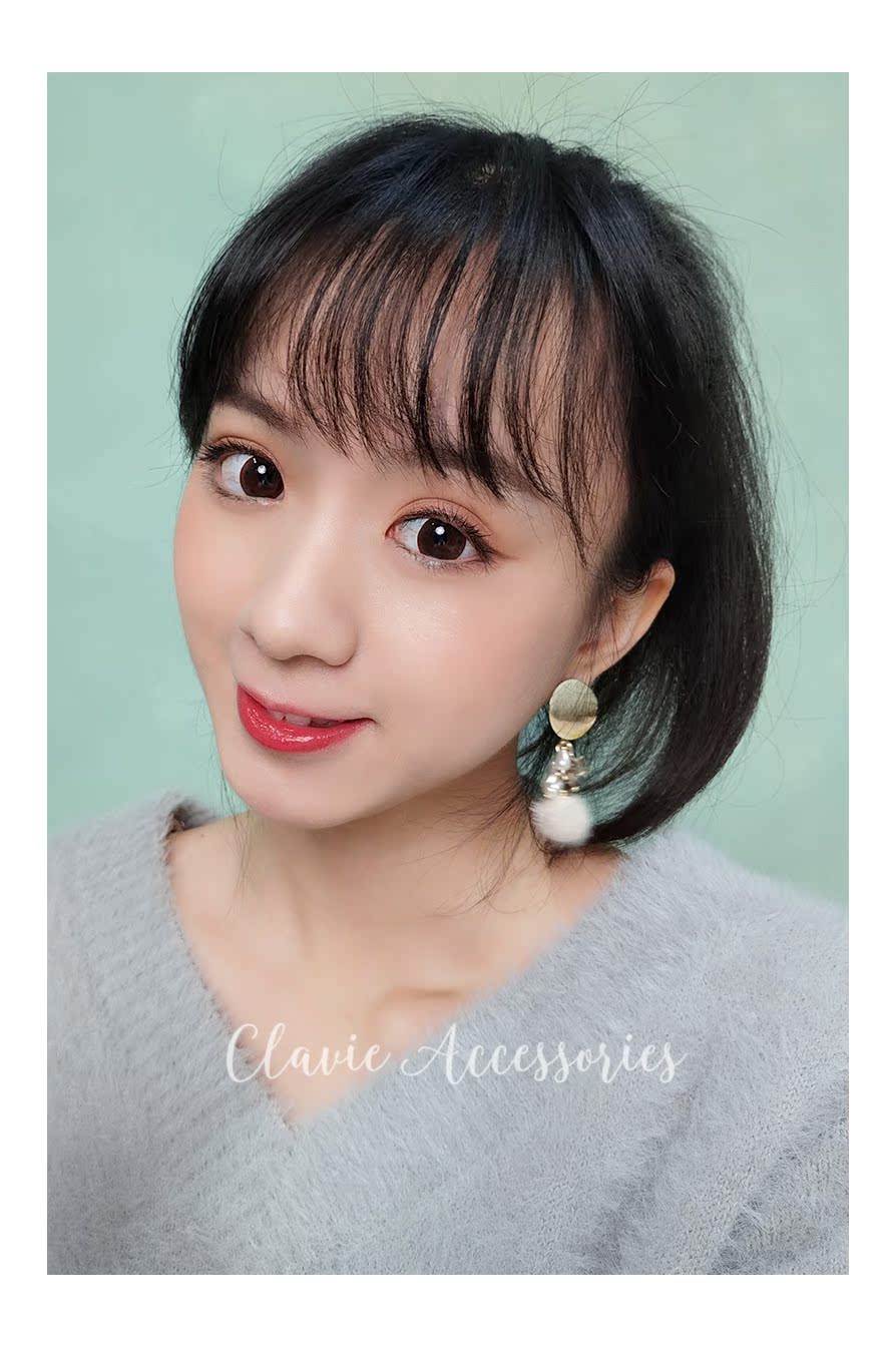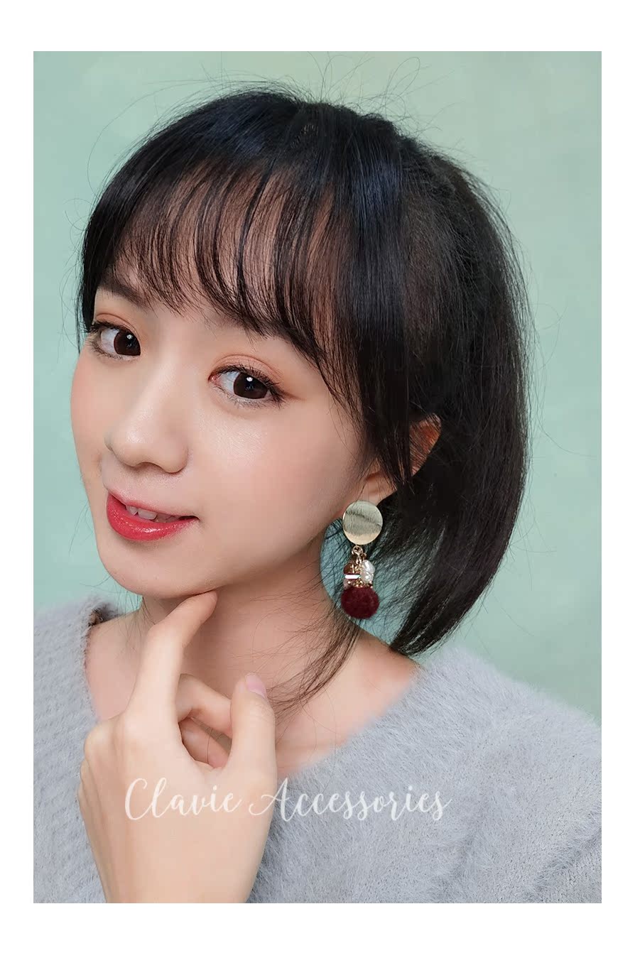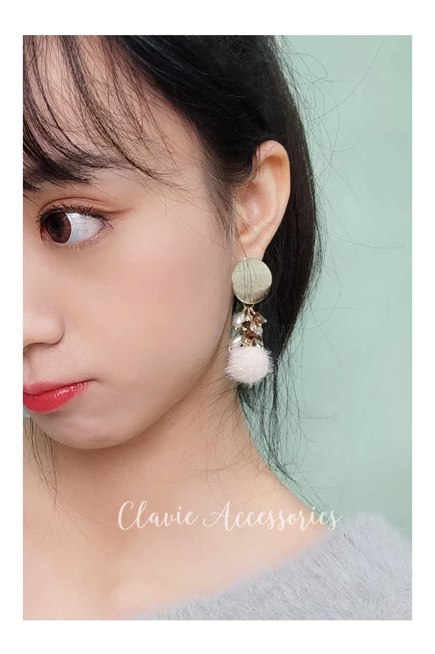 金屬拉絲水晶串珠毛絨毛球可愛溫暖無耳洞耳釘耳夾樹脂女秋冬新款1入