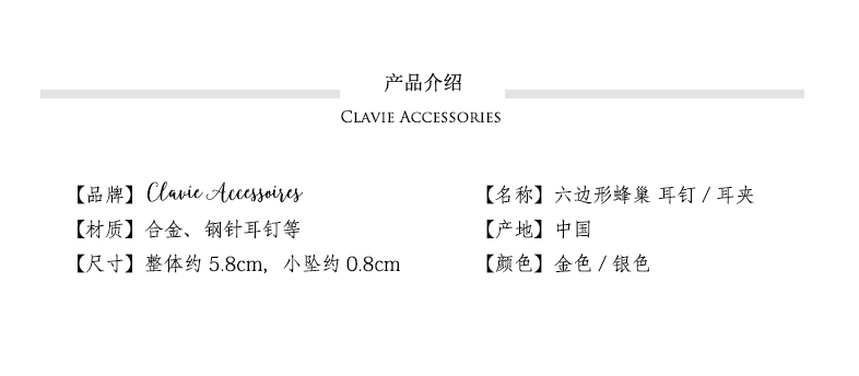 韓國小眾設計個性潮人長款蜂巢適合圓臉的耳環耳釘耳夾無耳洞女1入