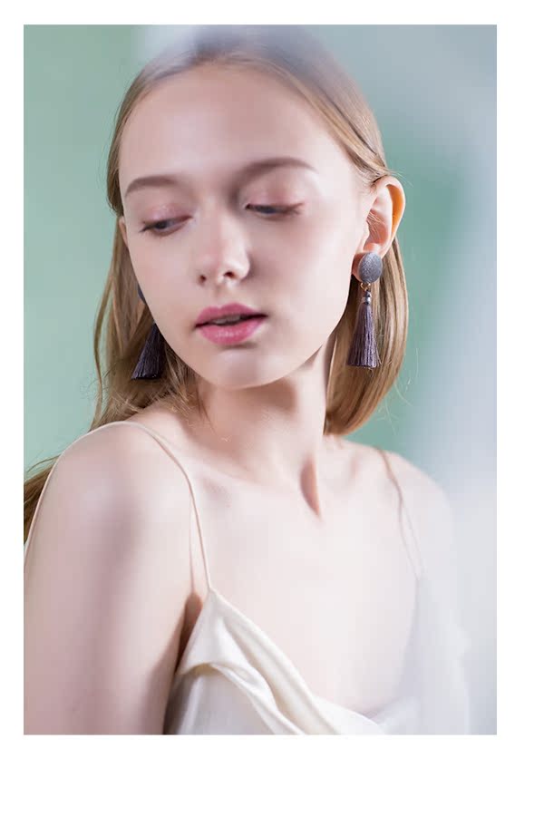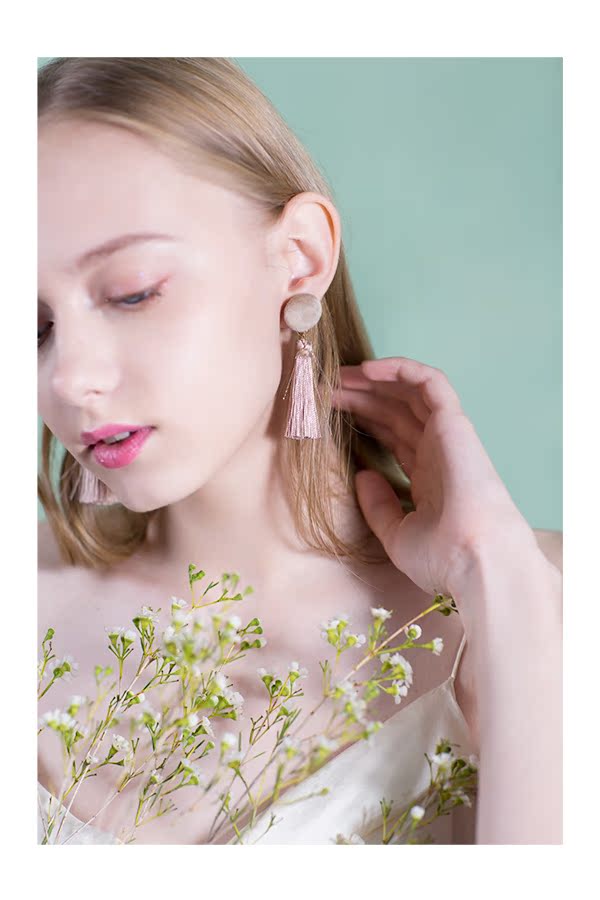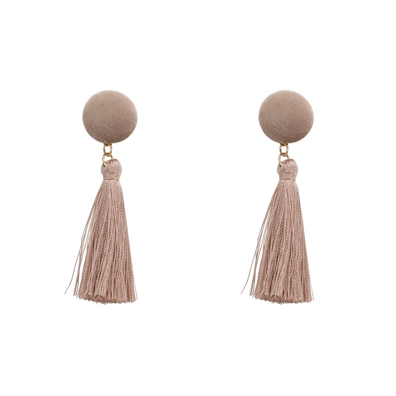 2018新款日本個性可愛百搭復古秋冬絲絨流蘇耳環耳釘女耳夾無耳洞1入