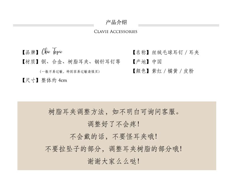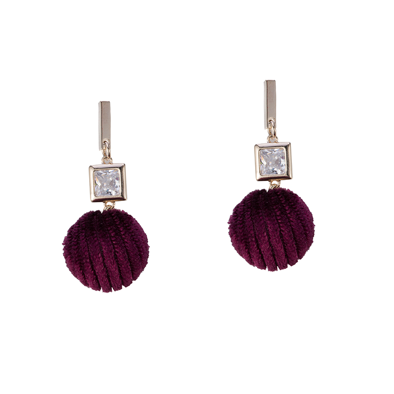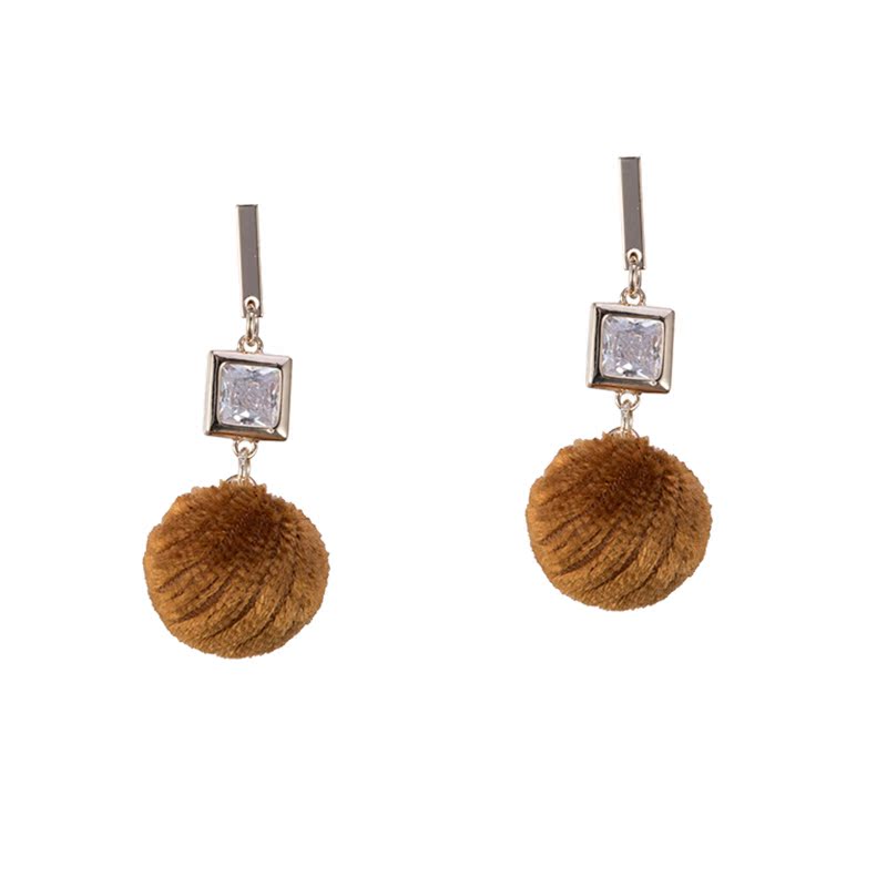 2018秋冬季新款毛絨毛球絲絨可愛球水鉆耳釘無耳洞耳夾耳墜耳飾女1入