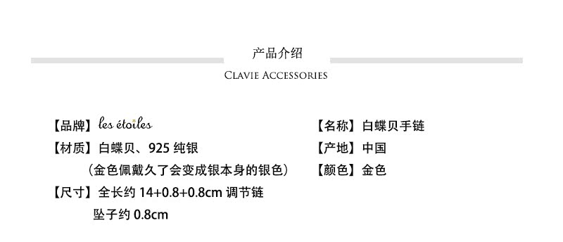 通勤OL簡約氣質日系3d打印小眾網紅天然白色蝶貝殼女S925純銀手鏈1入