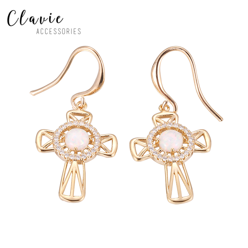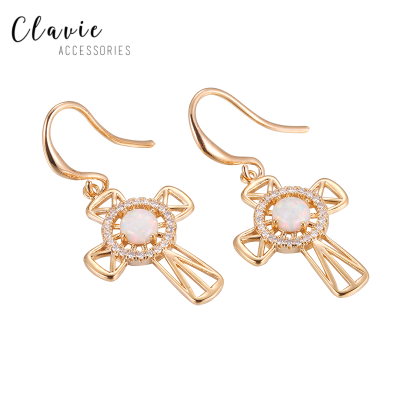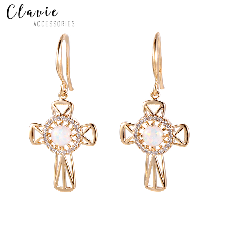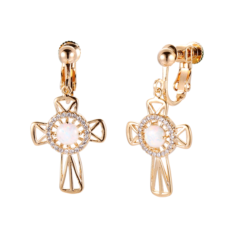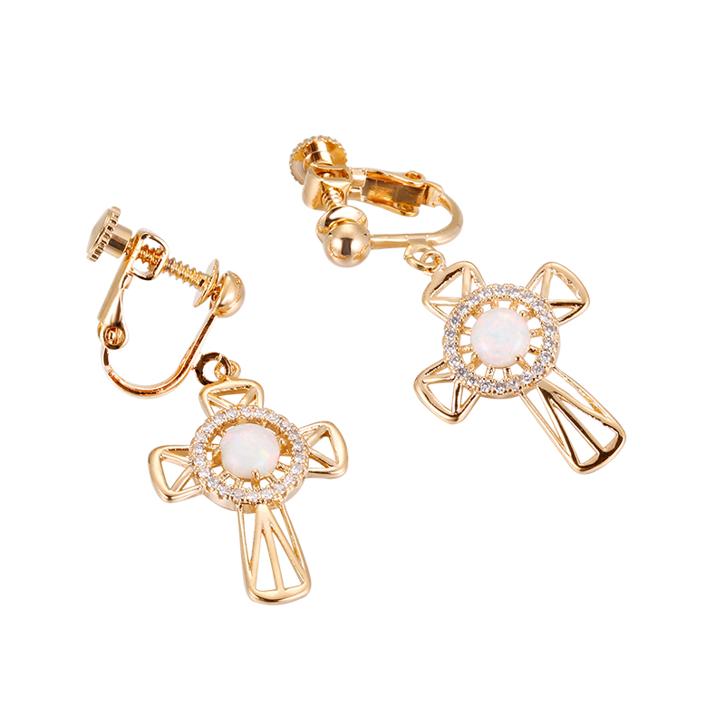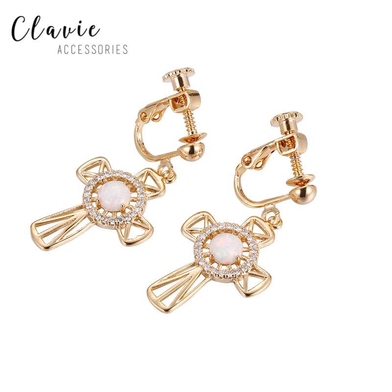 高級感復古宮廷人造歐泊opal十字架酷帥耳環無耳洞螺絲螺旋耳夾女1入