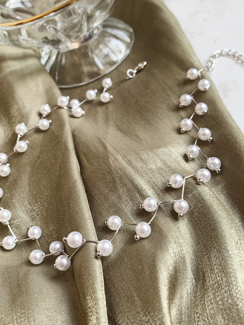超仙珍珠choker仙多層貝珠項鏈新娘頸鏈頸帶鎖骨鏈女1入