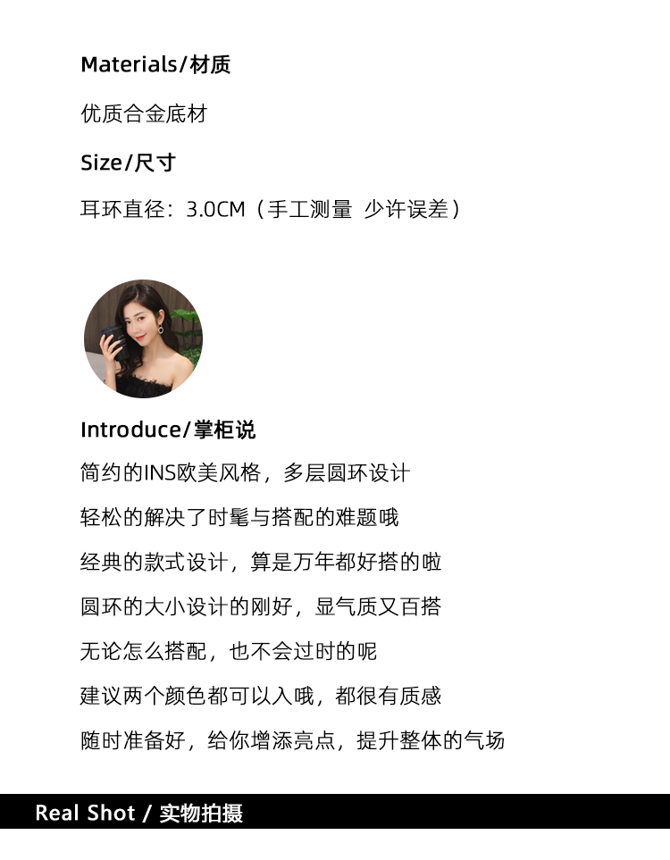 銀針耳飾品冷淡風耳環女2019新款潮歐美圓環耳釘個性網紅1入