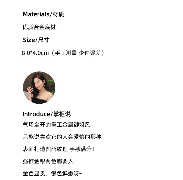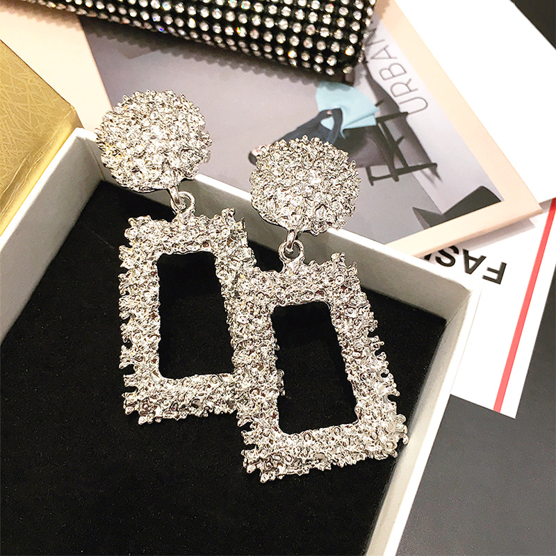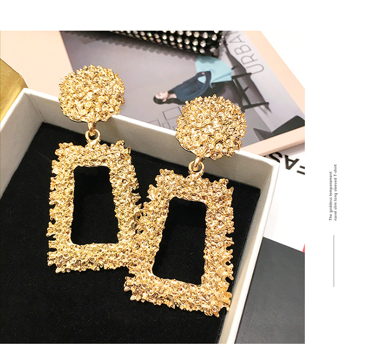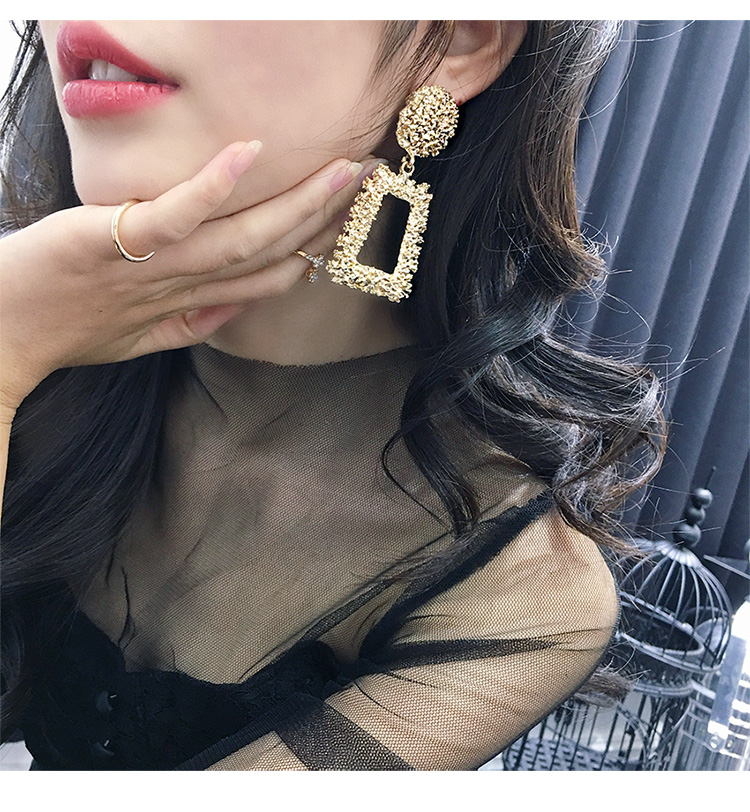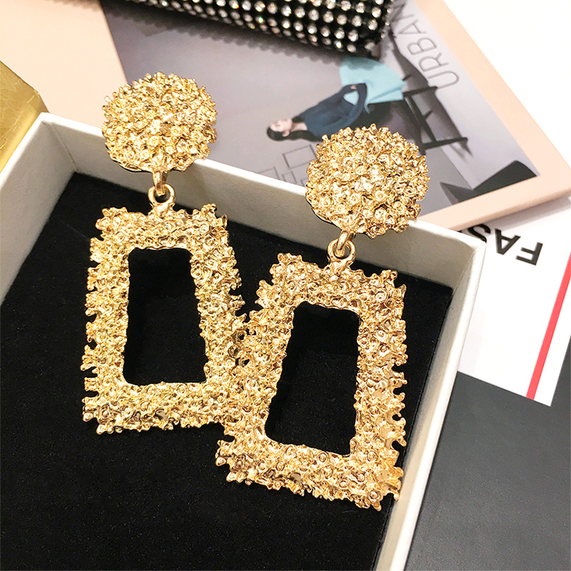 高級感夸張大幾何耳環女歐美金箔耳飾耳墜2019新款潮耳釘1入