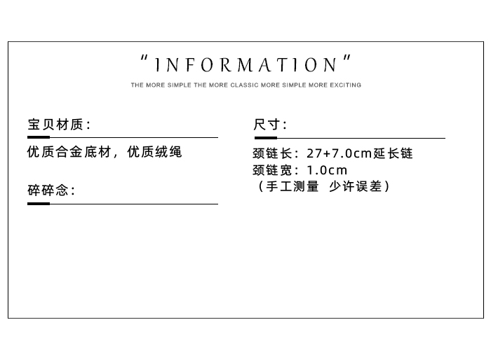 鎖骨鏈女頸帶短款韓國絨繩頸鏈脖子裝飾品項鏈Choker項圈1入