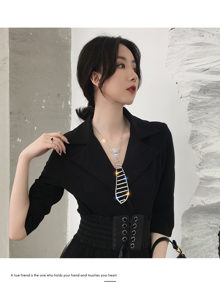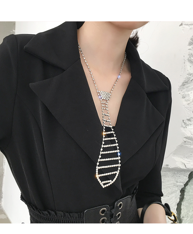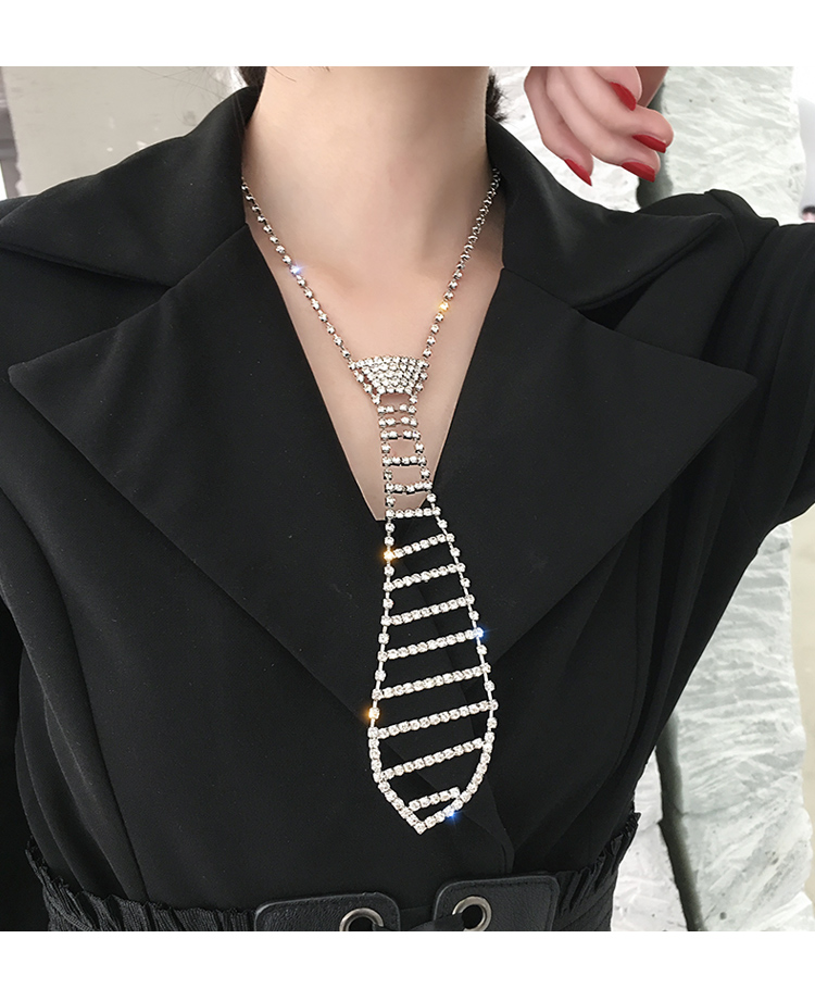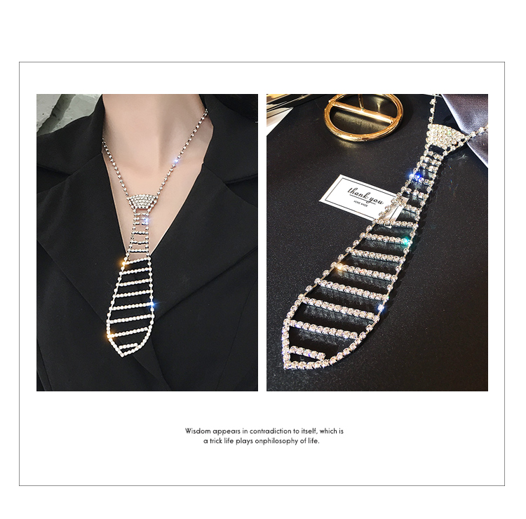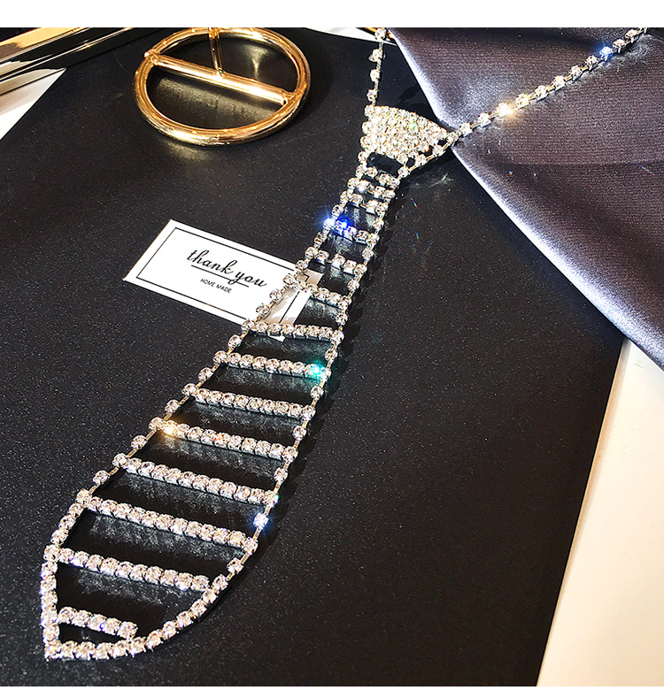 超閃水鉆領帶項鏈女潮網紅ins歐美夸張奢華長款冷淡風裝飾1入