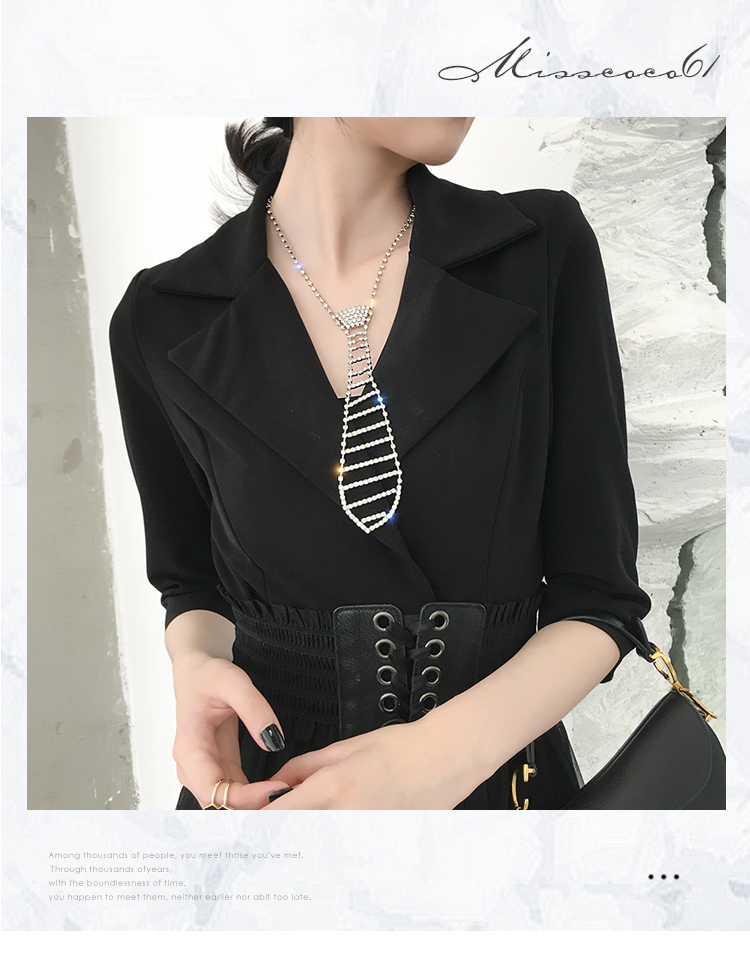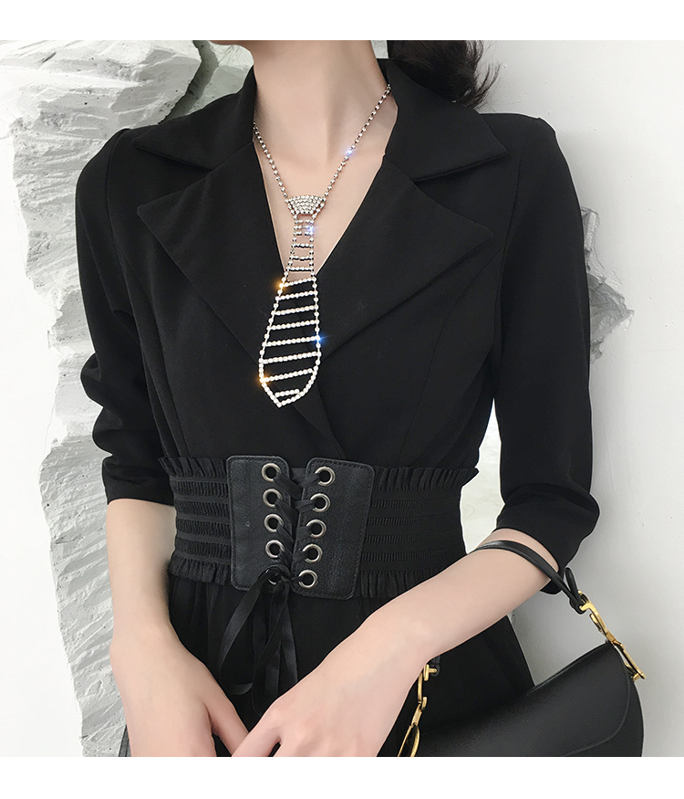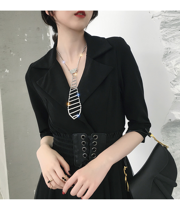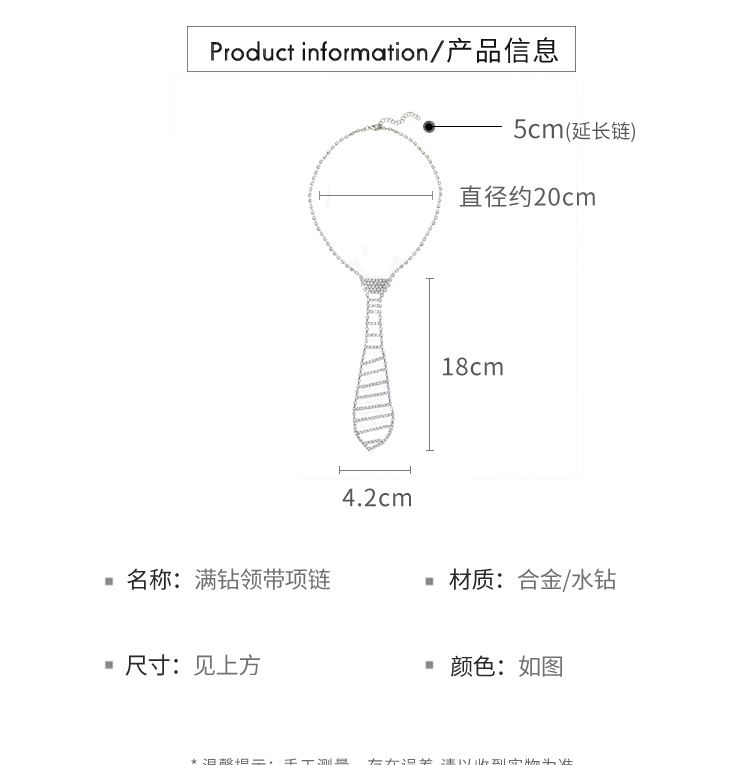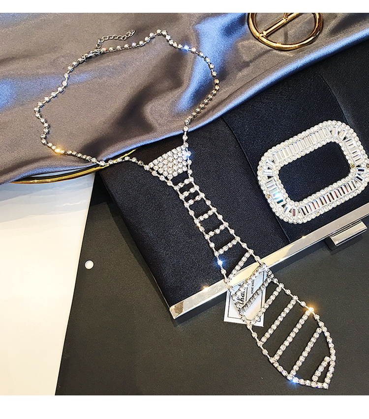 超閃水鉆領帶項鏈女潮網紅ins歐美夸張奢華長款冷淡風裝飾1入