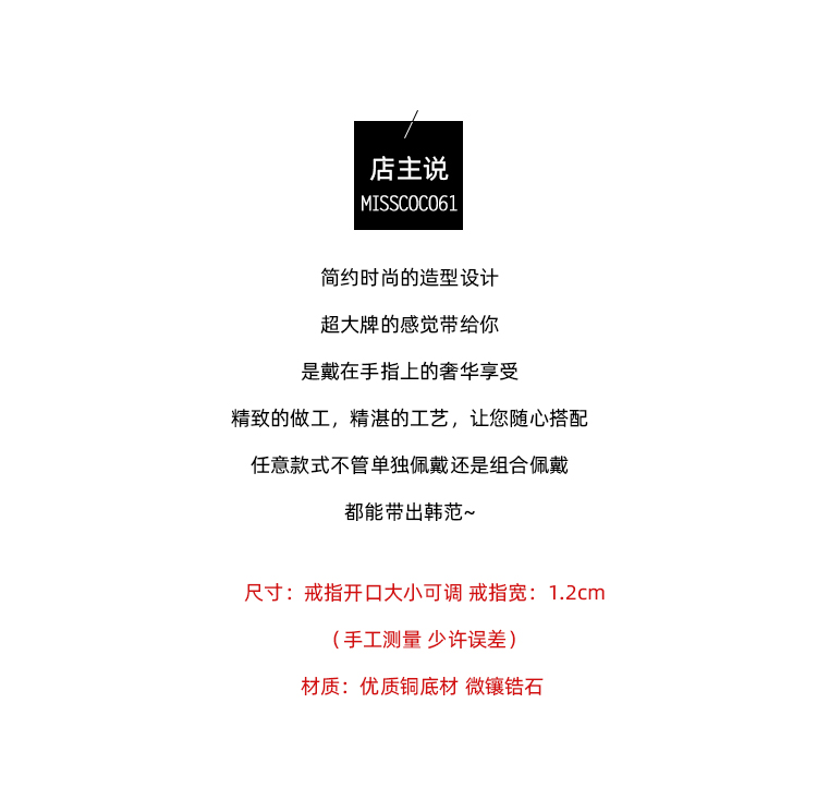 2019開口可調節戒指女蹦迪網紅Chic食指環情侶簡約冷淡風1入