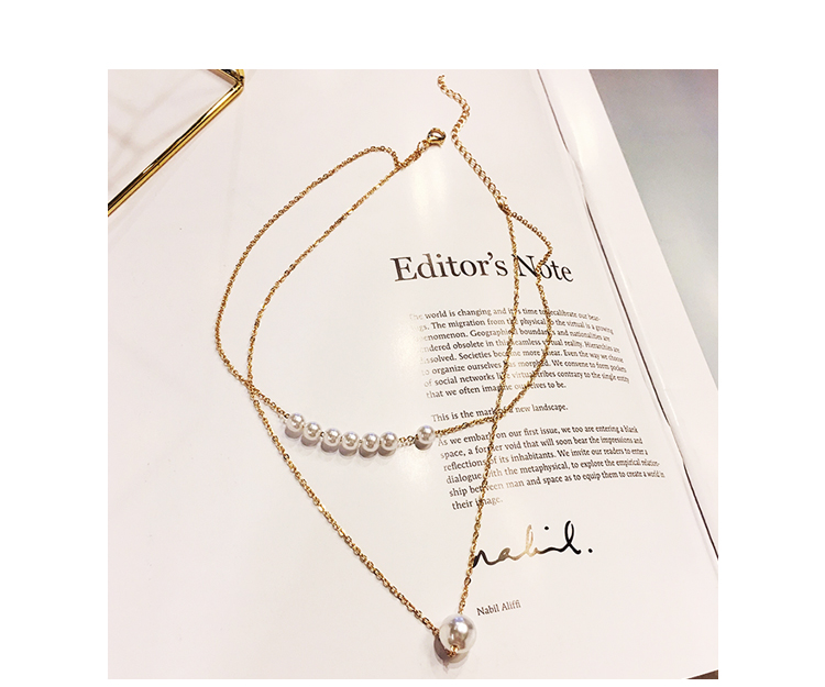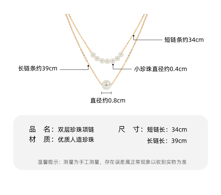 雙層珍珠choker仙項鏈女韓國脖子飾品頸帶頸鏈短款鎖骨鏈1入
