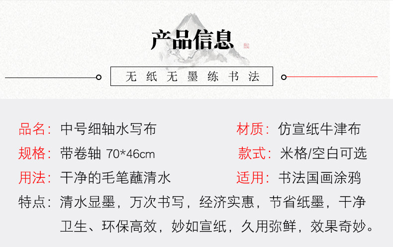 文房用品書法水寫布仿宣紙免墨水寫練習毛筆字70*46米格1入