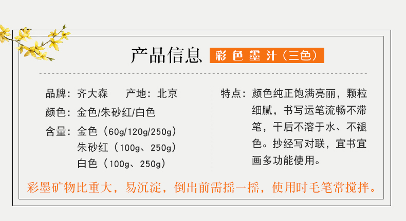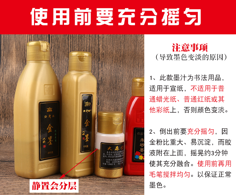 金色墨汁墨液齊大森金墨汁白墨汁書畫書法寫春聯抄心經小楷朱砂墨1入