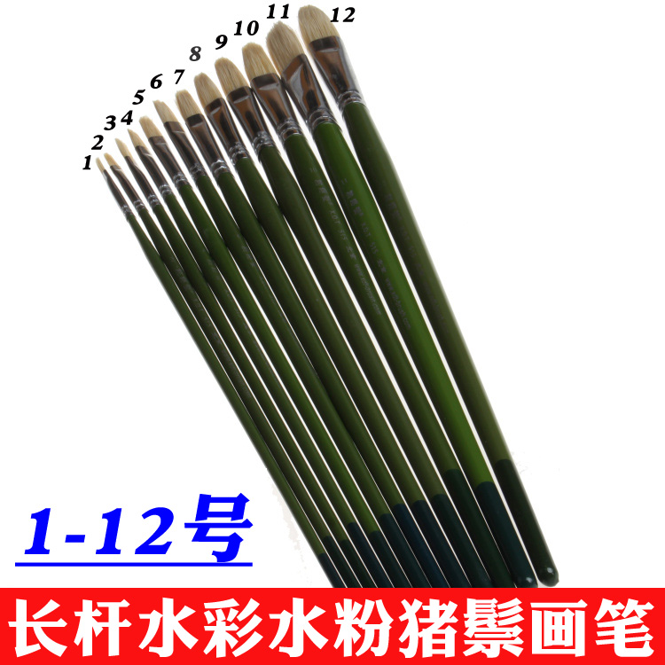 豬鬃水粉油畫筆長桿 單支 套裝水彩筆 學生練習丙烯畫筆 水粉畫筆1入