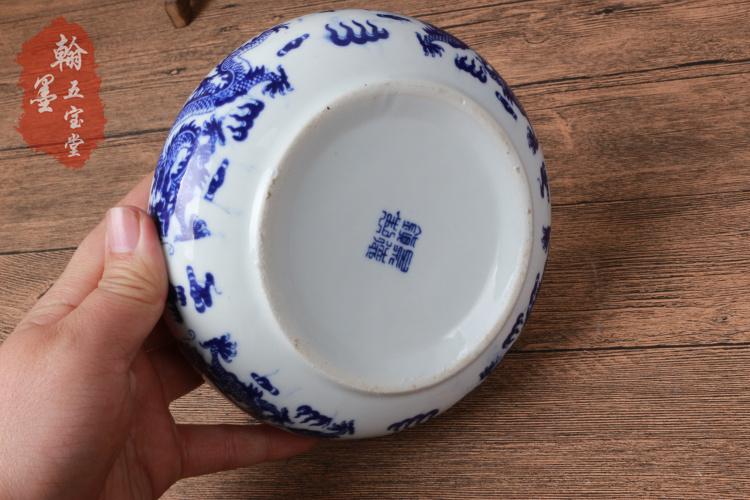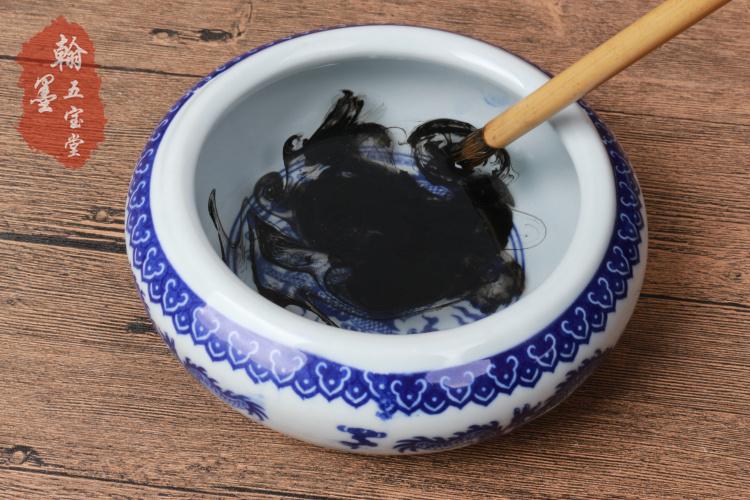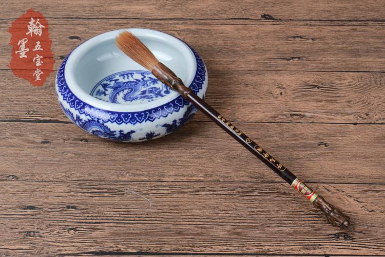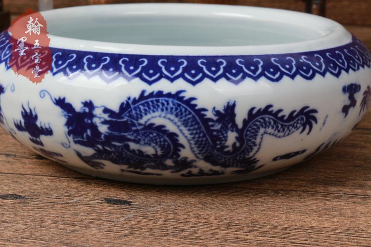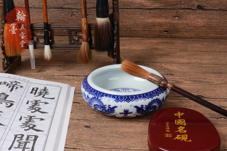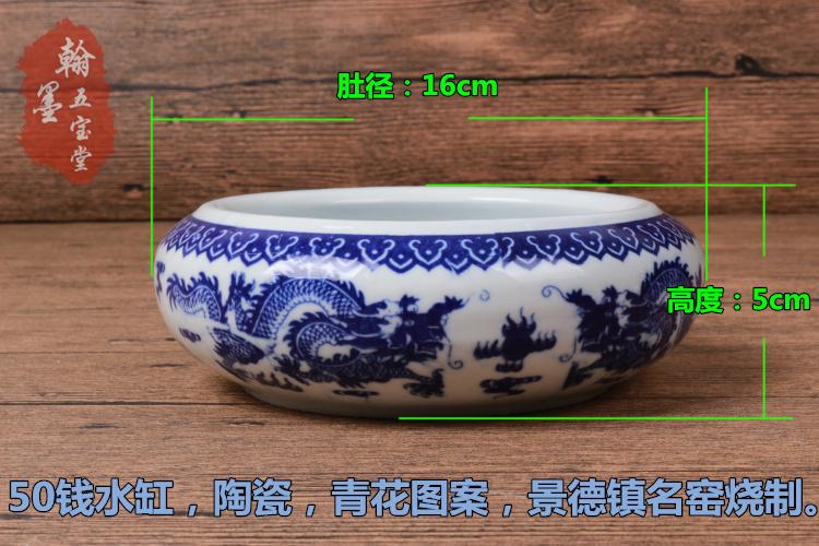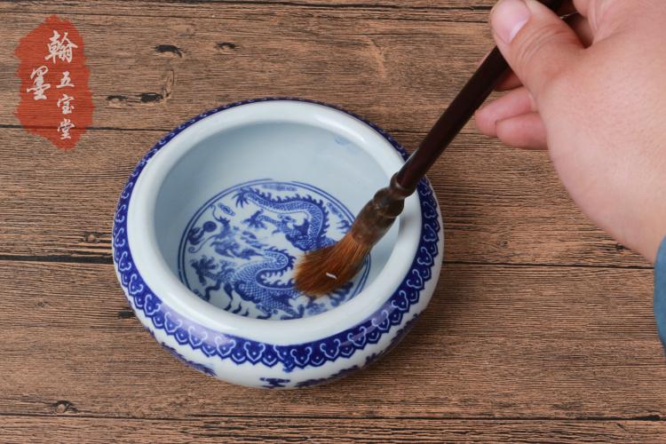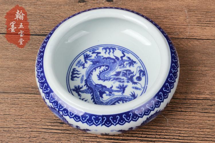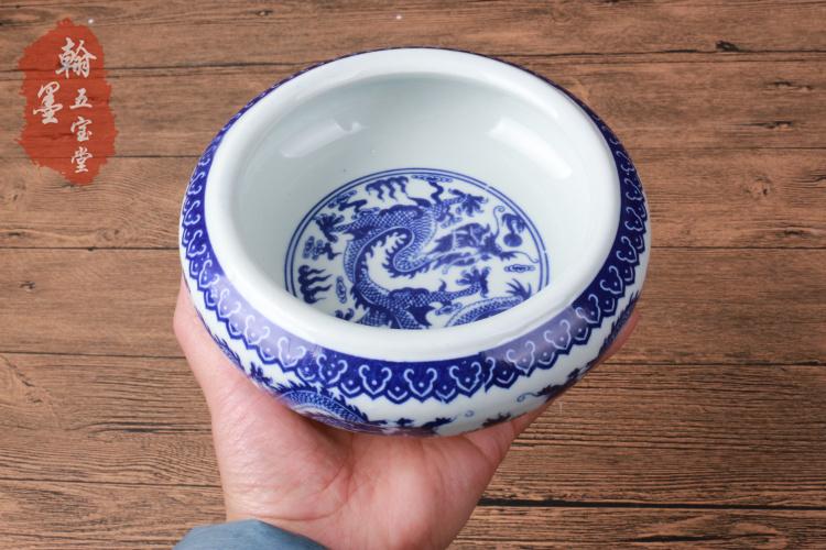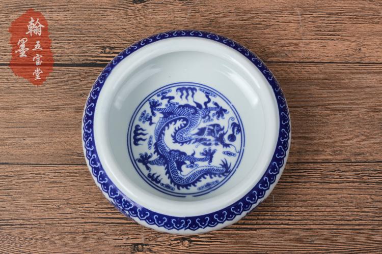 青花瓷陶瓷筆洗毛筆缸洗筆文房四寶龍圖案毛筆書法國畫水盂1入