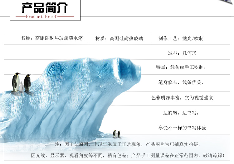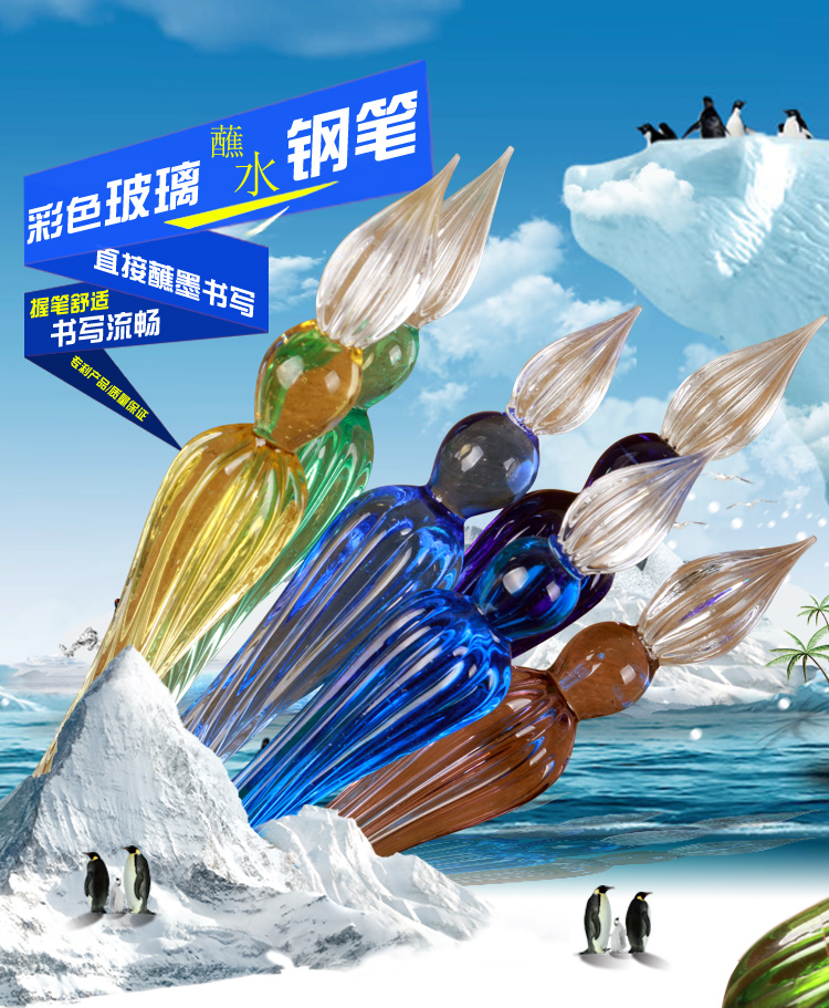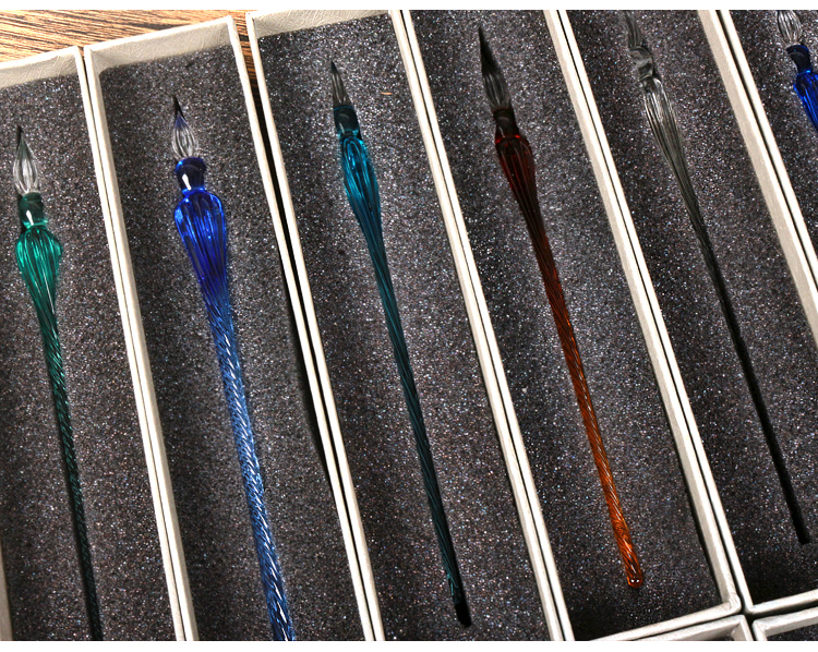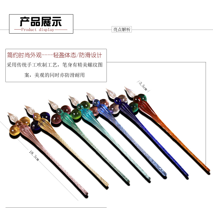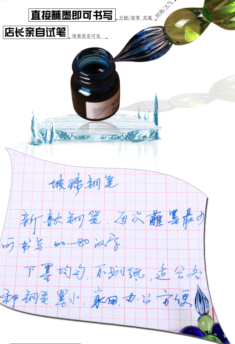 新款玻璃透明蘸水墨筆學生辦公書法簽名水晶藝術時尚用筆特價1入