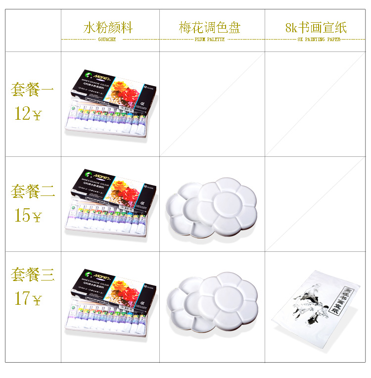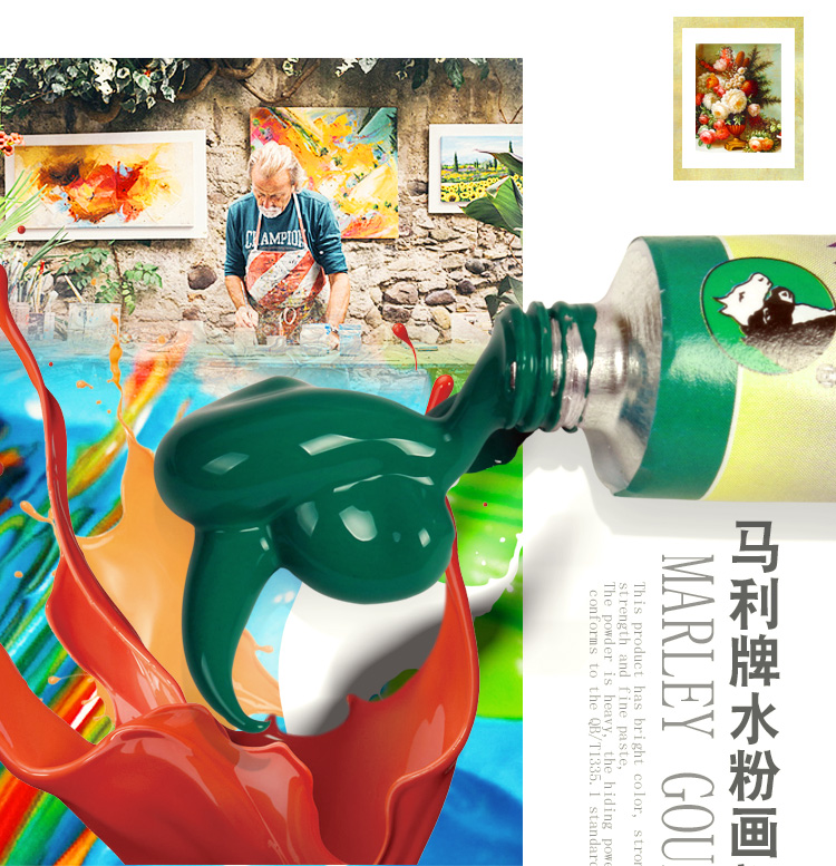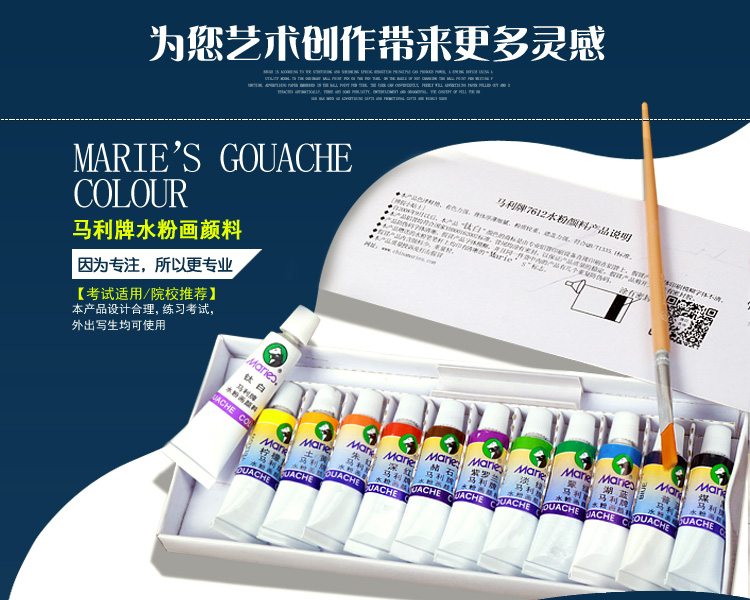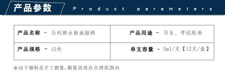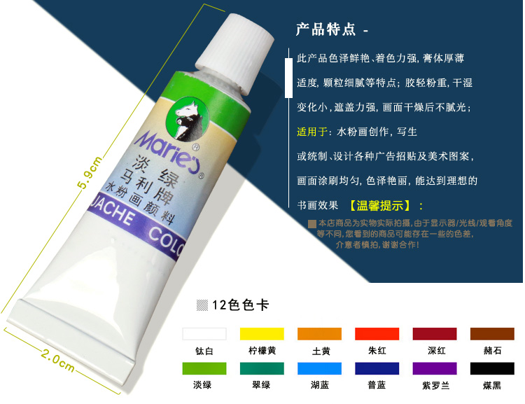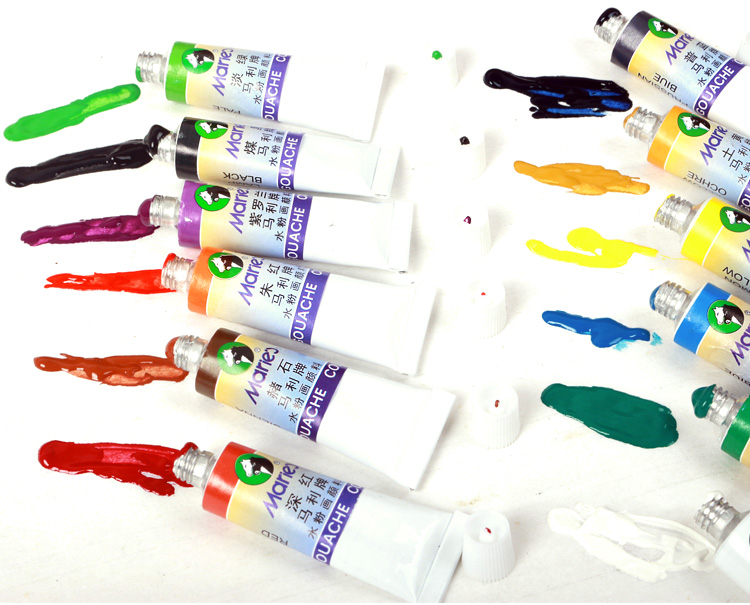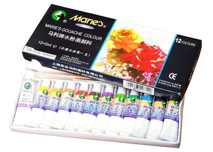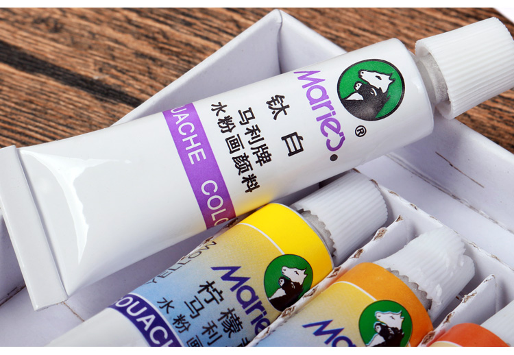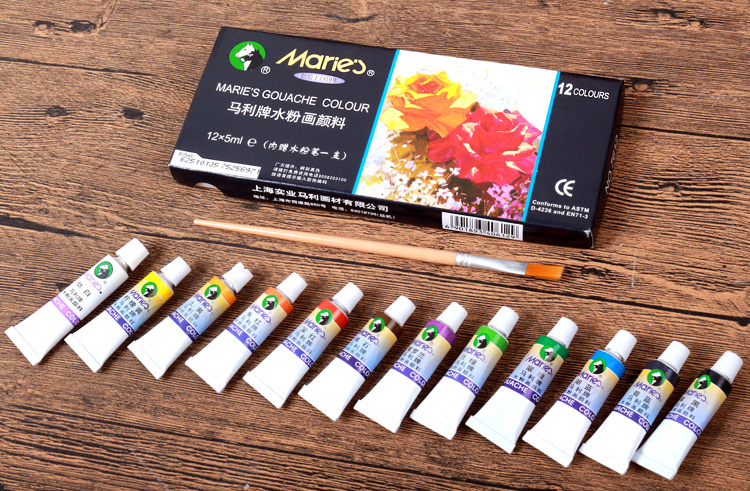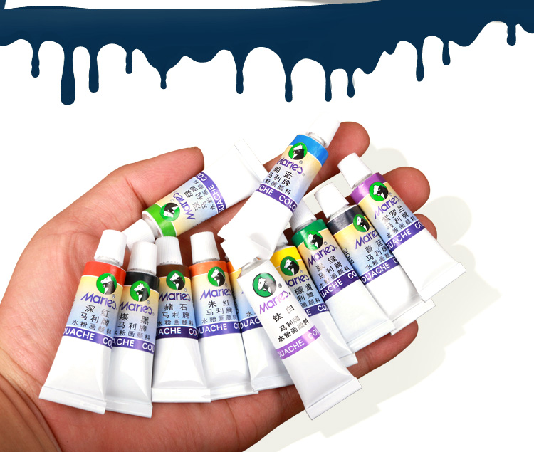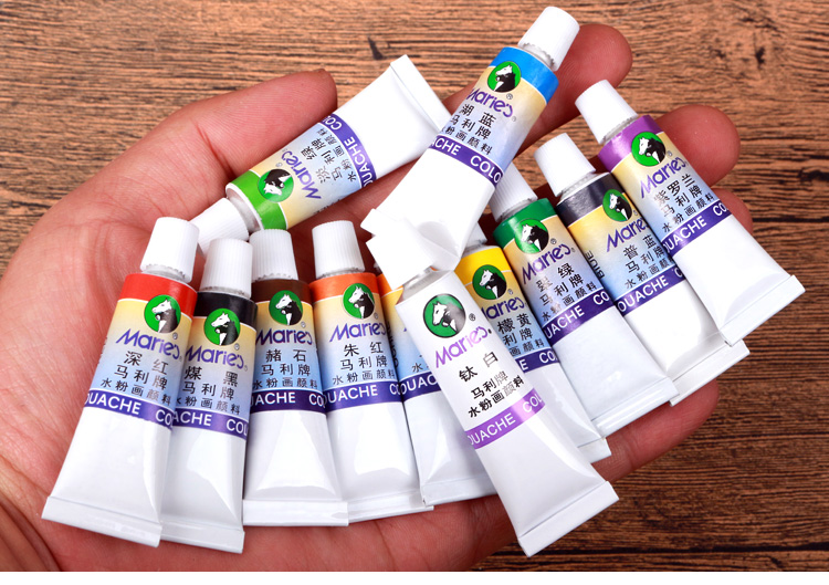 馬利牌水粉畫顏料12色*5ML送1支水粉筆 學生美術繪畫寫生水粉顏料1入