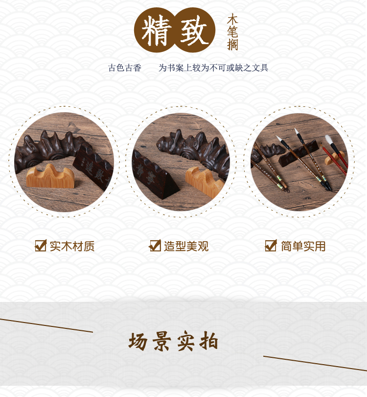 黑梓木根雕筆架筆托筆擱筆山毛筆練習書法文房用品工具實木竹筆擱1入