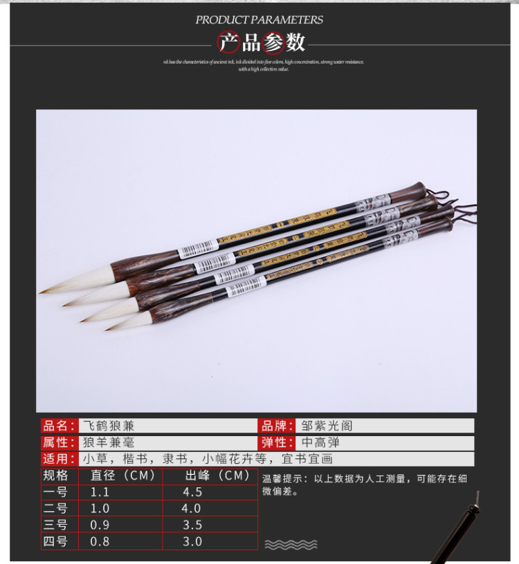 鄒紫光閣 飛鶴狼兼羊毫兼毫毛筆1234號 行草楷書國畫書法練習1入